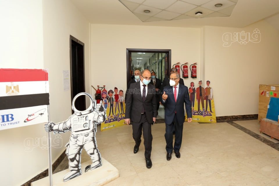 حيث كان فى استقباله الدكتور محمد القوصى رئيس الوكالة، بحضور الدكتور هشام فوزى عميد كلية الهندسة، الدكتور صبرى عبد الرحيم وكيل الكلية لشئون التعليم والطلاب، والدكتور أحمد حسين رئيس قسم التشييد بالكلية، والقائمين على المشروع وهم د.أبو بكر الهادى، د.رياض غازى، د.ابراهيم لطفى، د.عمرو الزامل، م.أحمد عبد الباسط.