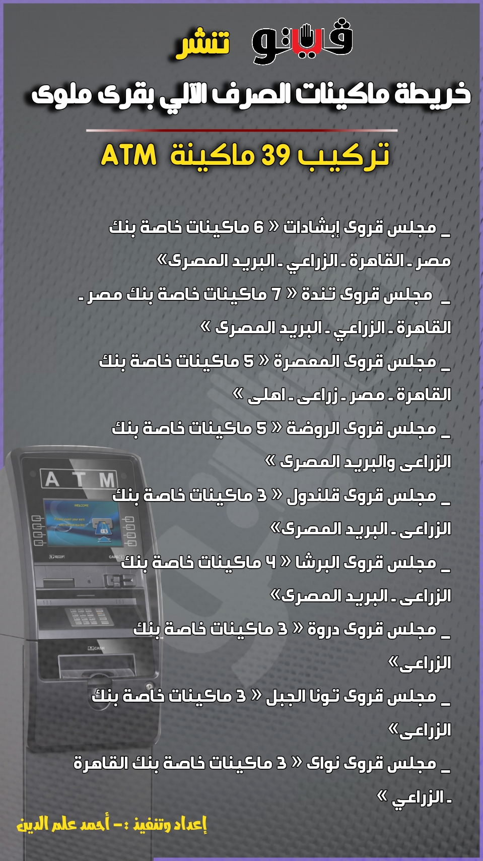 «فيتو».. تنشر خريطة ماكينات الصرف الآلي بقرى ملوى والبالغ عددها 39 مكينة صرف على نطاق 9 مراكز قروية بالمركز.