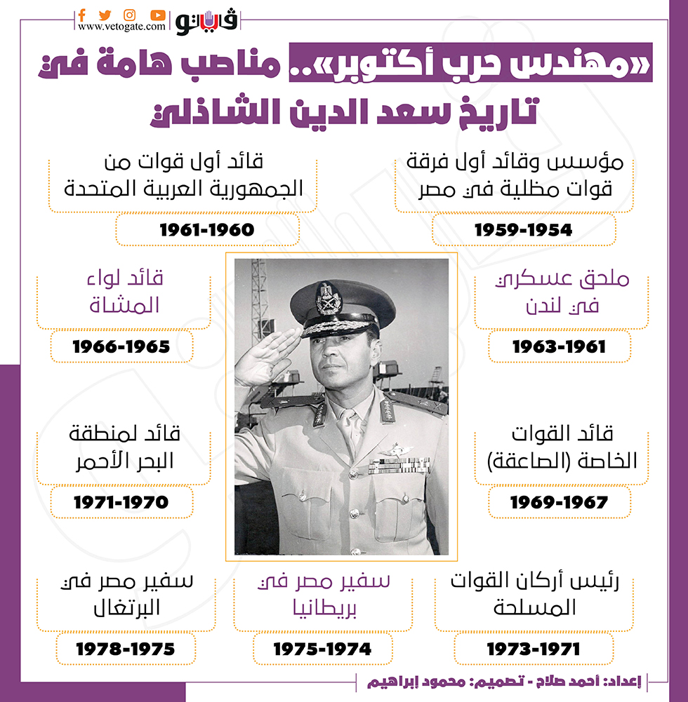 «مهندس حرب أكتوبر».. مناصب هامة في تاريخ سعد الدين الشاذلي | انفوجراف الخميس 10/فبراير/2022 - 02:30 م 2/10/2022 2:30:26 PM حرب اكتوبر أحمد صلاح شارك طباعة 18 حجم الخط شارك طباعة سعد سعد الدين الفريق سعد الدين الشاذلي حرب اكتوبر