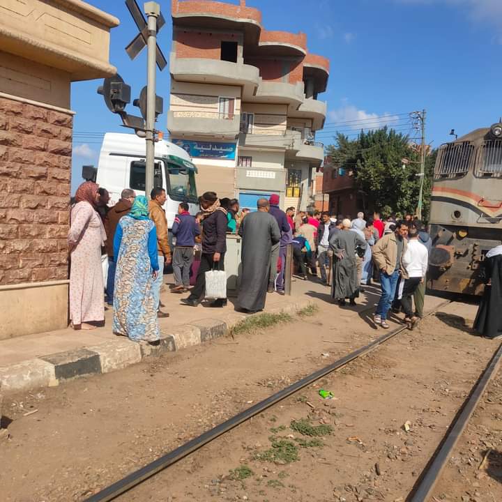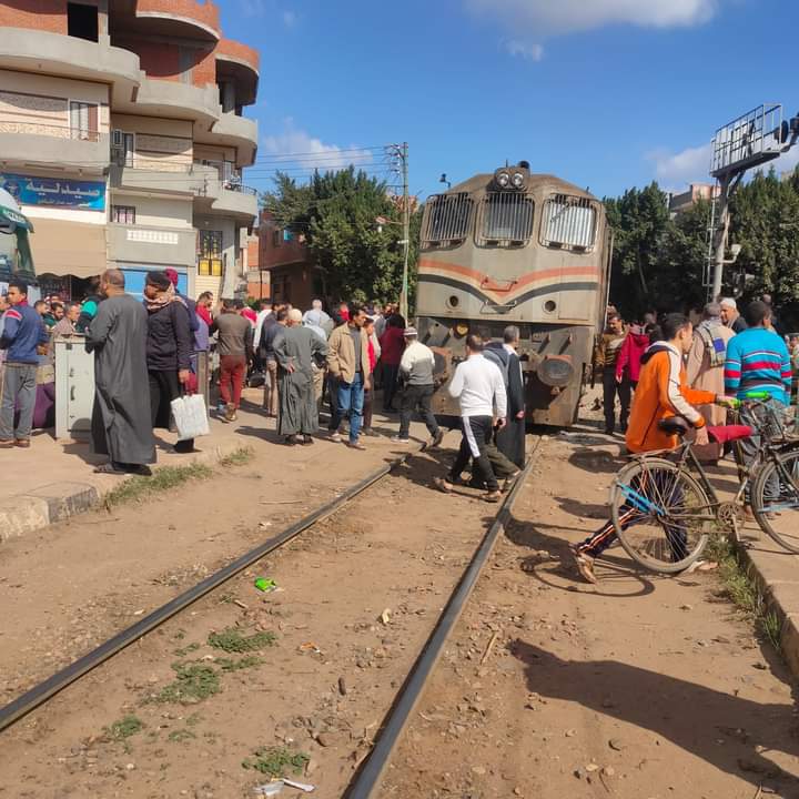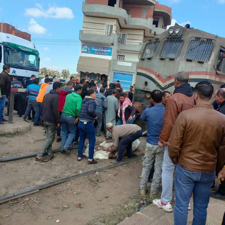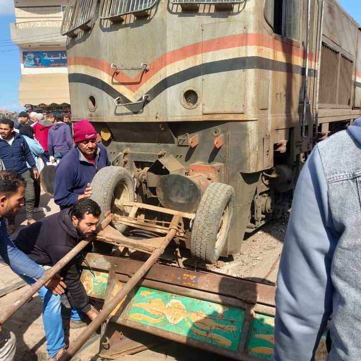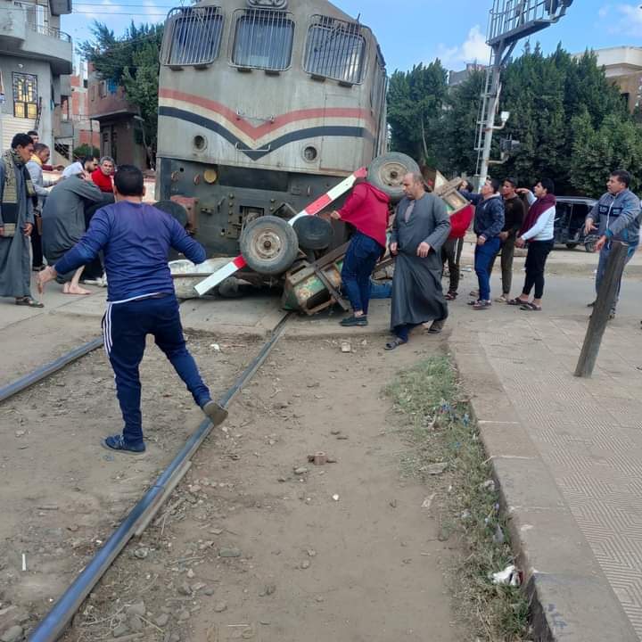 الصور الأولى لحادث تصادم قطار بعربة كارو ومصرع سائقها في كفر الزيات