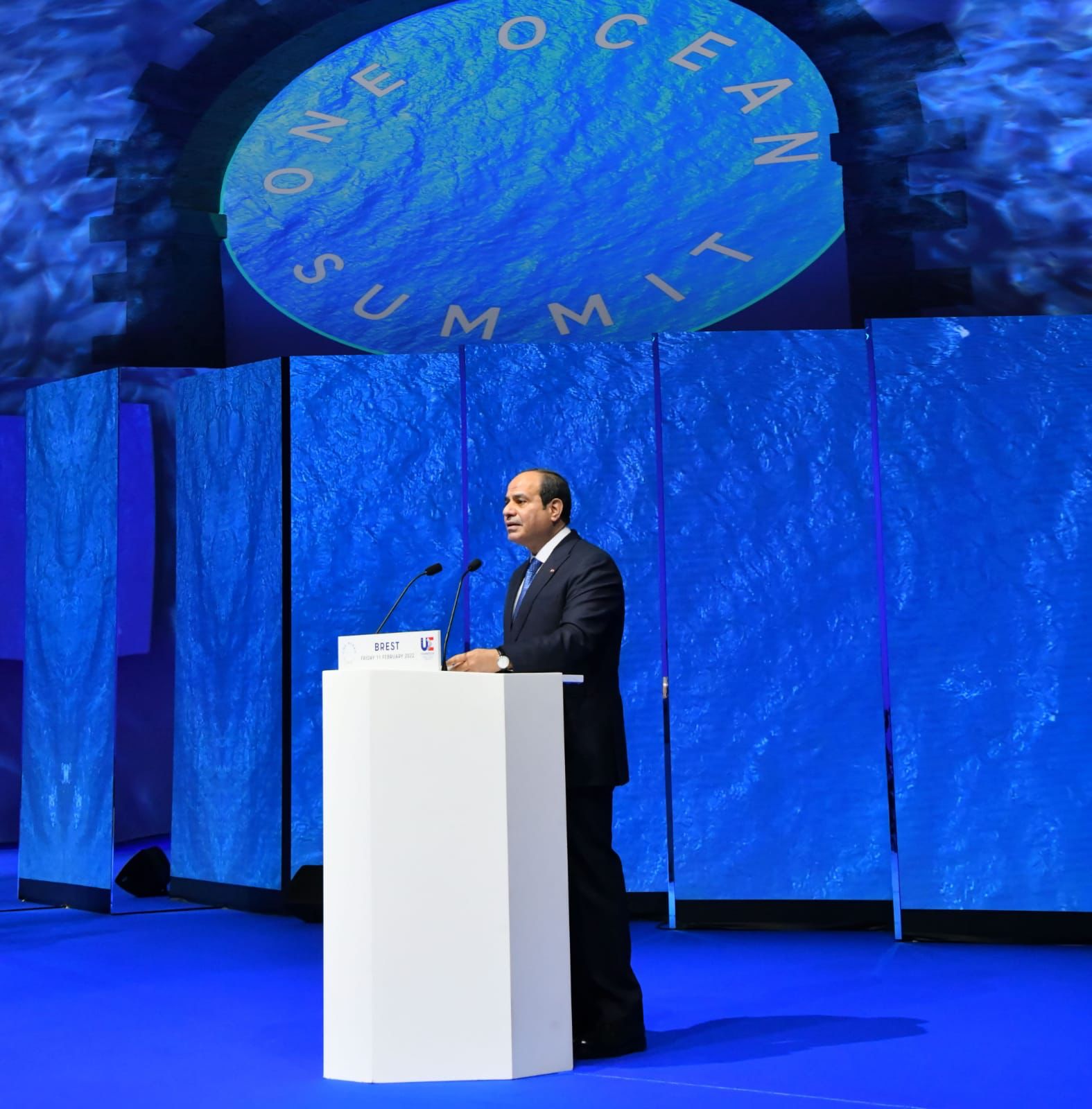 وتأكيدًا على مساهمتنا، في الجهد الدولي لحماية البحار والمحيطات يسرني أن أعلن عن انضمام مصر، إلى الإعلان المقرر صدوره عن قمتنا هذه، تحت عنوان، "حماية المحيط: وقت العمل" وكذلك إلى مبادرتي "التحالف العالمي للمحيطات"، و"التحالف عالي الطموح من أجل الطبيعة والبشر" ونتطلع إلى العمل في إطار تلك المبادرات المهمة مع كافة الأطراف، لضمان تحقيقهما للنتائج المرجوة.