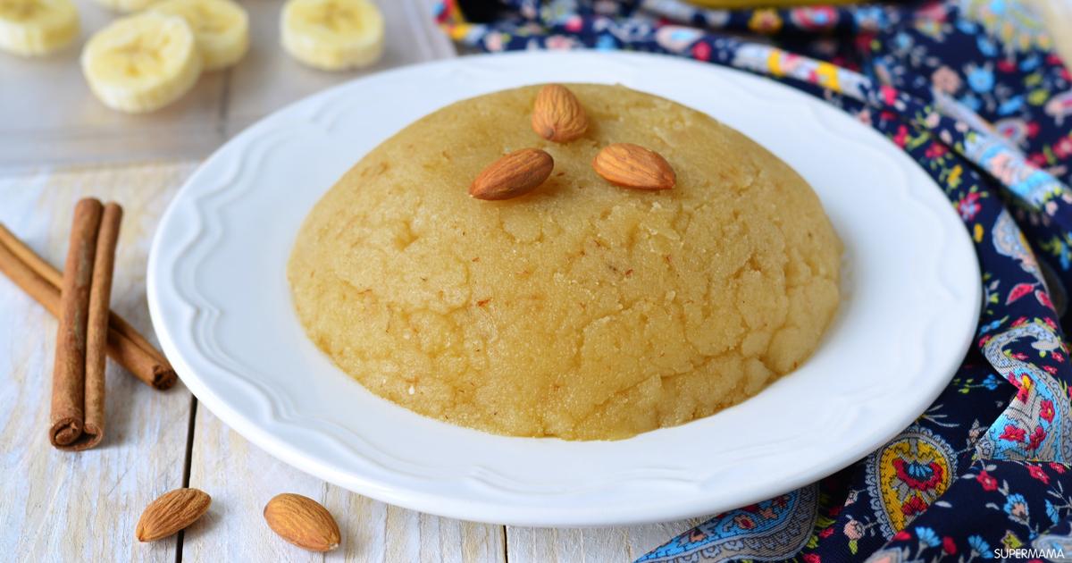 - نضعه فى طبق التقديم ونساوى سطحه ونزينه بالمكسرات المجروشة ويقدم ساخنا.