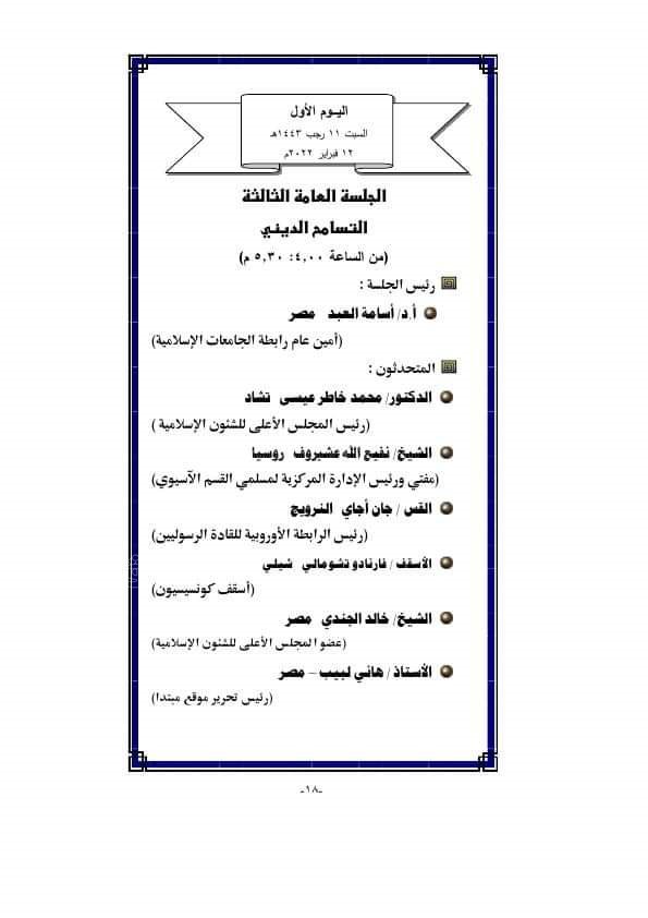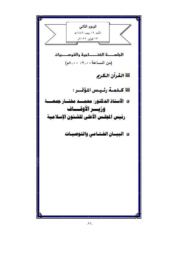 بالتفاصيل.. فعاليات مؤتمر الأوقاف الدولي "أثر عقد المواطنة في تحقيق السلام"