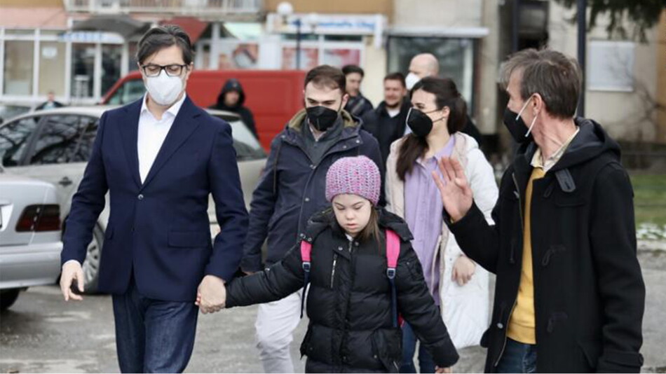 اصطحب رئيس مقدونيا الشمالية فتاة تبلغ من العمر 11 عامًا مصابة بمتلازمة داون إلى المدرسة بعد أن سمع أنها تتعرض للتنمر.