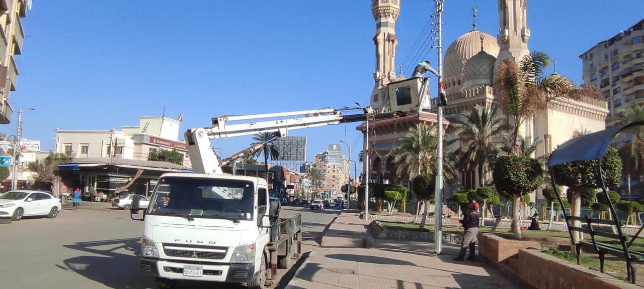 كما تم غسيل شارع الجمهورية من أول حديقة عروس النيل حتى مكتبه المنصورة، كما تم مراجعه الخلايا والأعمدة وتدعيم الاناره ورفع كفاءة الأعمدة بالطريق المؤدي إلى الدنابيق وبشارع عثمان بن عفان بتقسيم طرطير وبالتفريعات وكذا مراجعة نظافة الحدائق العامة بشارع الجيش بنطاق حى شرق.