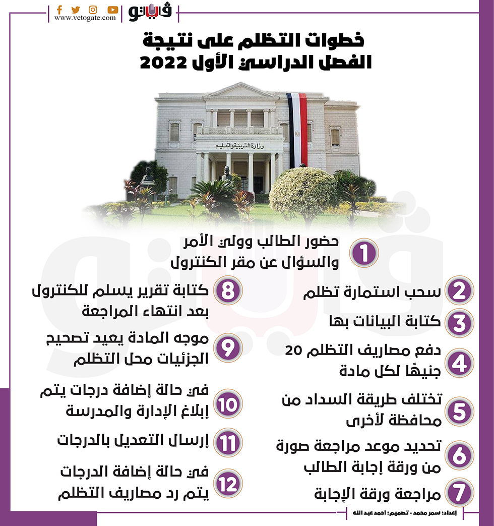 خطوات التظلم على نتيجة الفصل الدراسي الأول 2022 | انفوجراف الإثنين 14/فبراير/2022 - 04:04 م 2/14/2022 4:04:55 PM خطوات التظلم سمر محمد شارك طباعة 18 حجم الخط شارك طباعة خطوات التظلم على نتيجة الترم الأول نتيجة الفصل الدراسي الاول نتيجة الفصل الدراسي الأول 2022 برقم الجلوس نتيجة الشهادة الاعدادية 2022