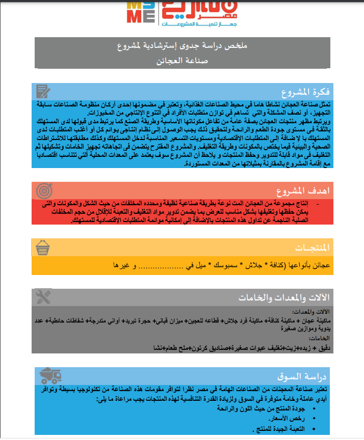 وتستعرض "فيتو" خلال السطور التالية كافة التفاصيل المتعلقة بدراسة جدوى استرشادية لمشروع صناعة العجائن، والتي أعدها جهاز تنمية المشروعات الصغيرة والمتوسطة.