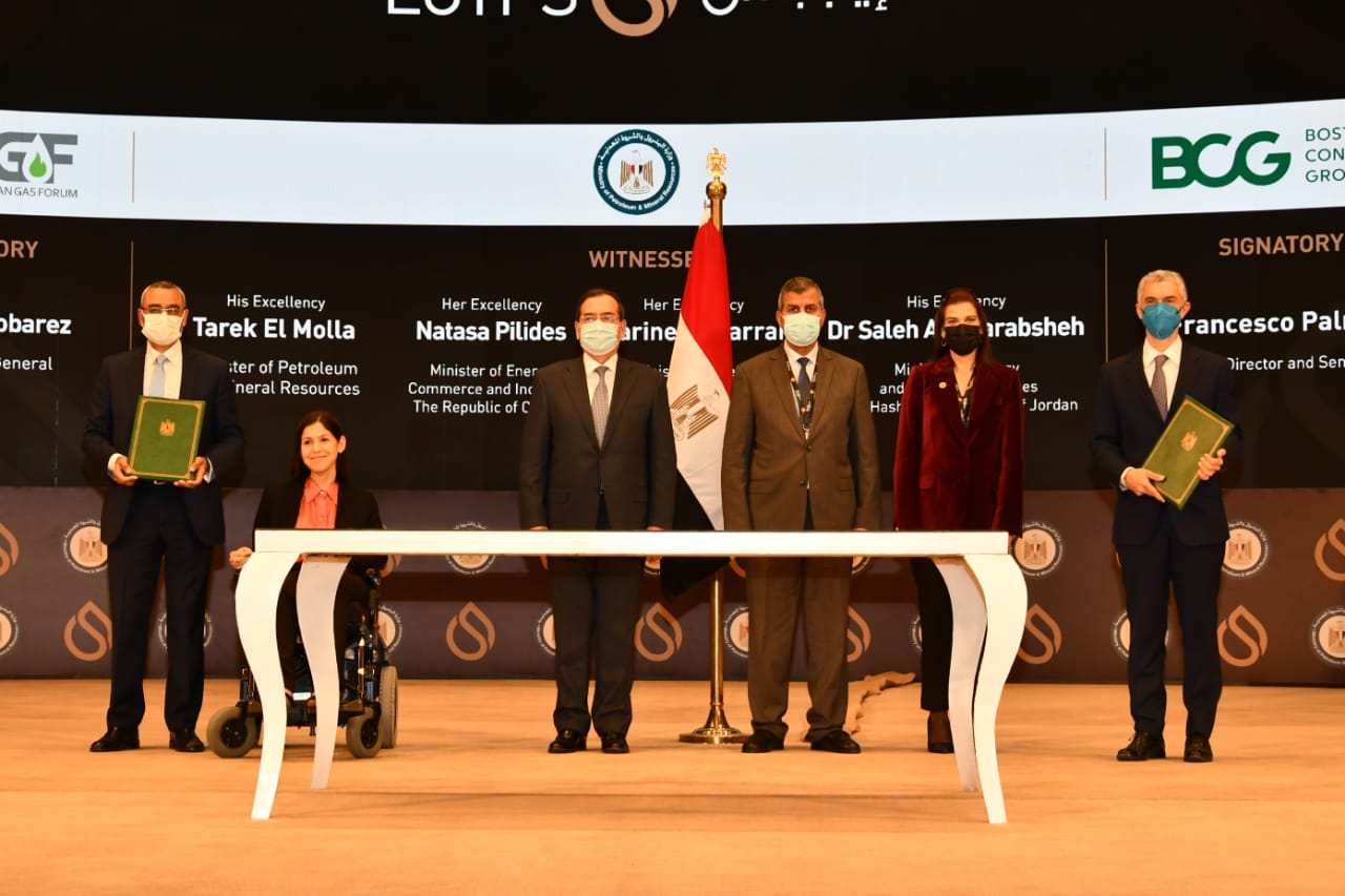 قام بالتوقيع السيد اسامة مبارز الأمين العام لمنتدى غاز شرق المتوسط وفرانسيسكو بالميري المدير العام لمجموعة بوسطن الاستشارية.