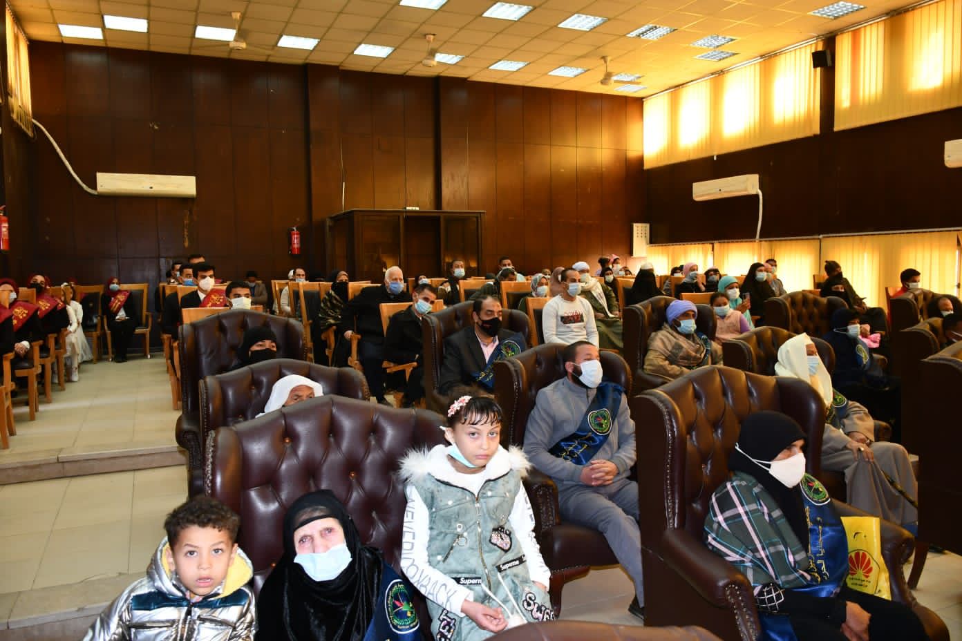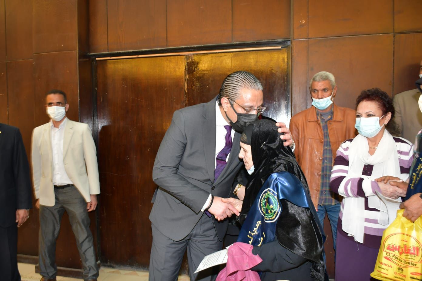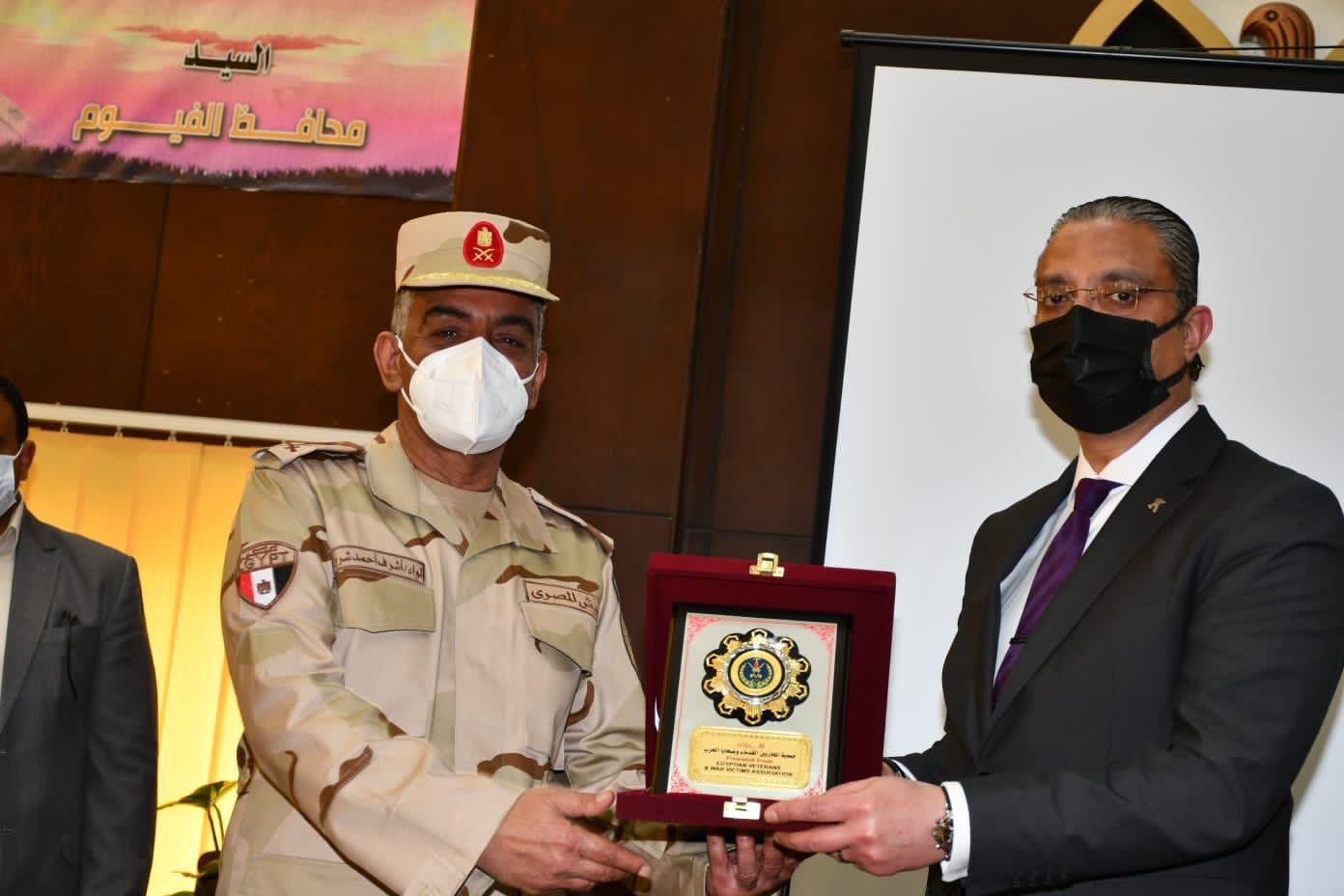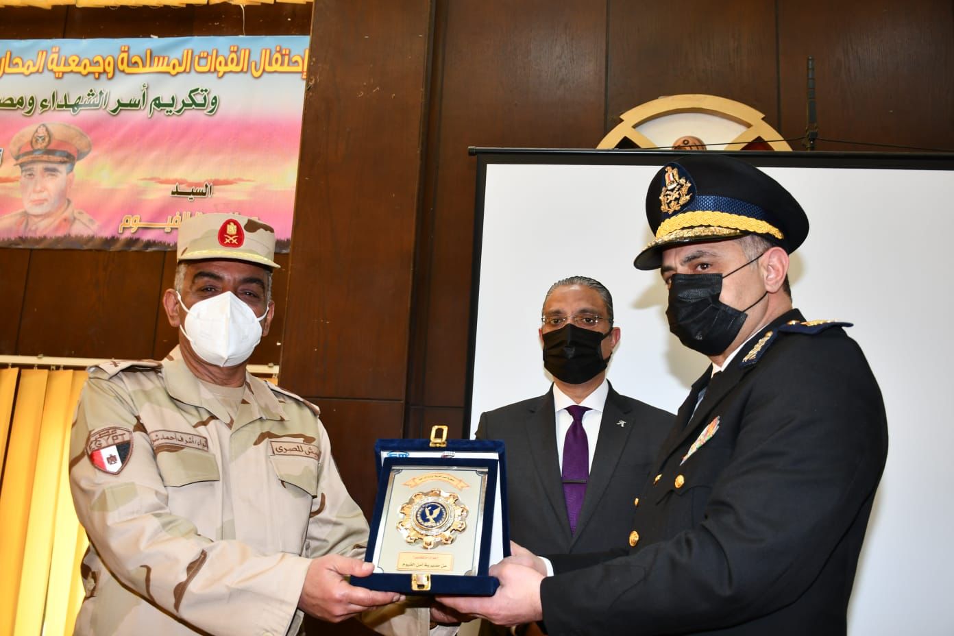 وفي الختام، قام محافظ الفيوم ومدير جمعية المحاربين القدماء، ومدير أمن الفيوم، بتكريم أسر شهداء الجيش والشرطة ومصابي العمليات الحربية ومنحهم المساعدات.