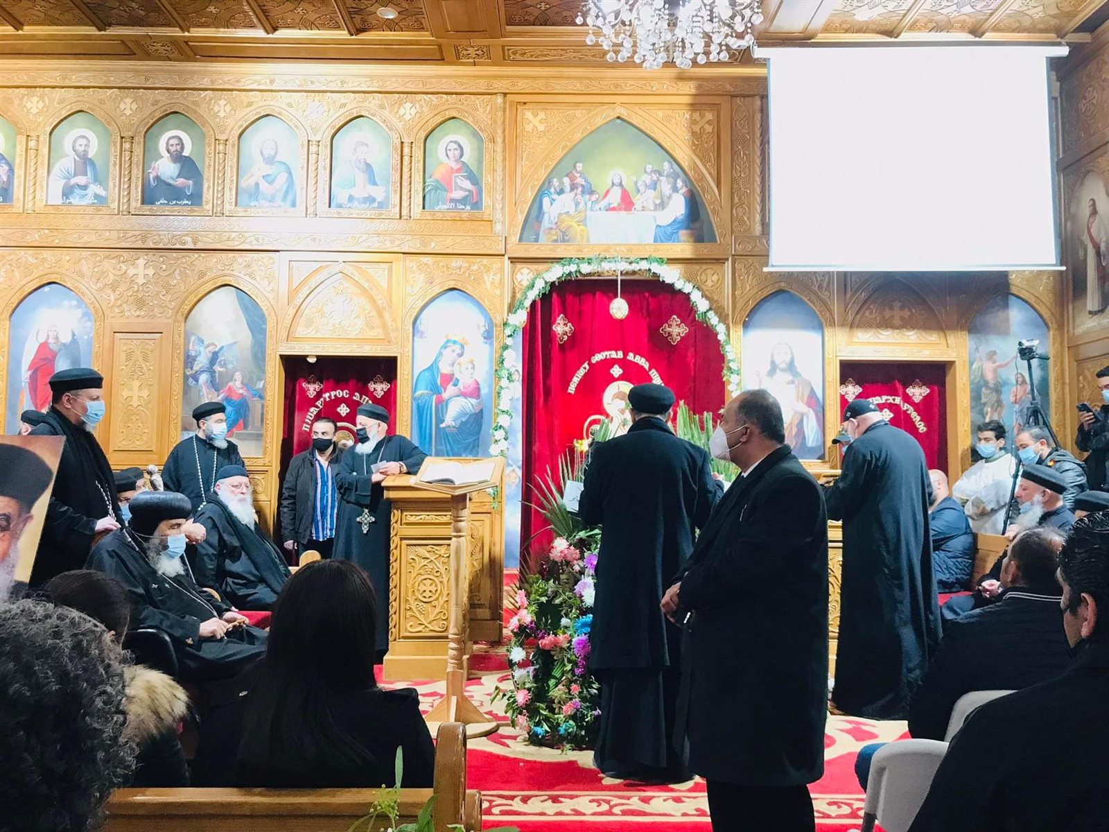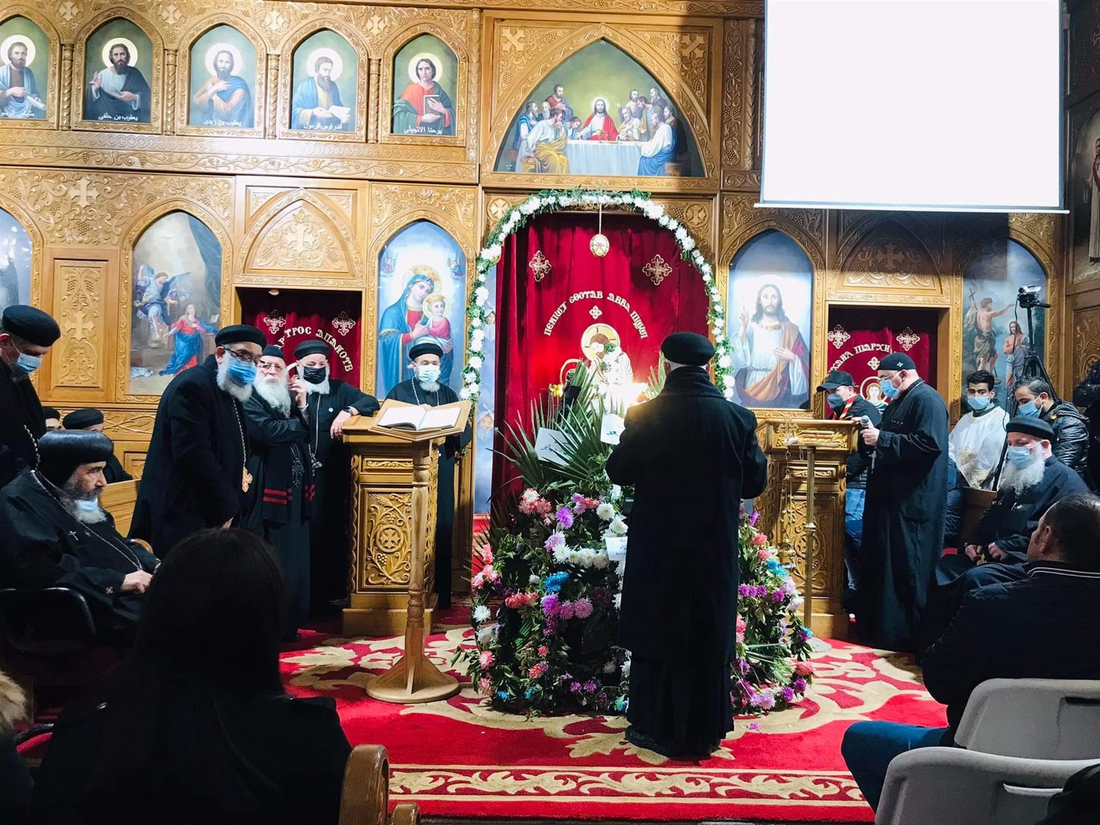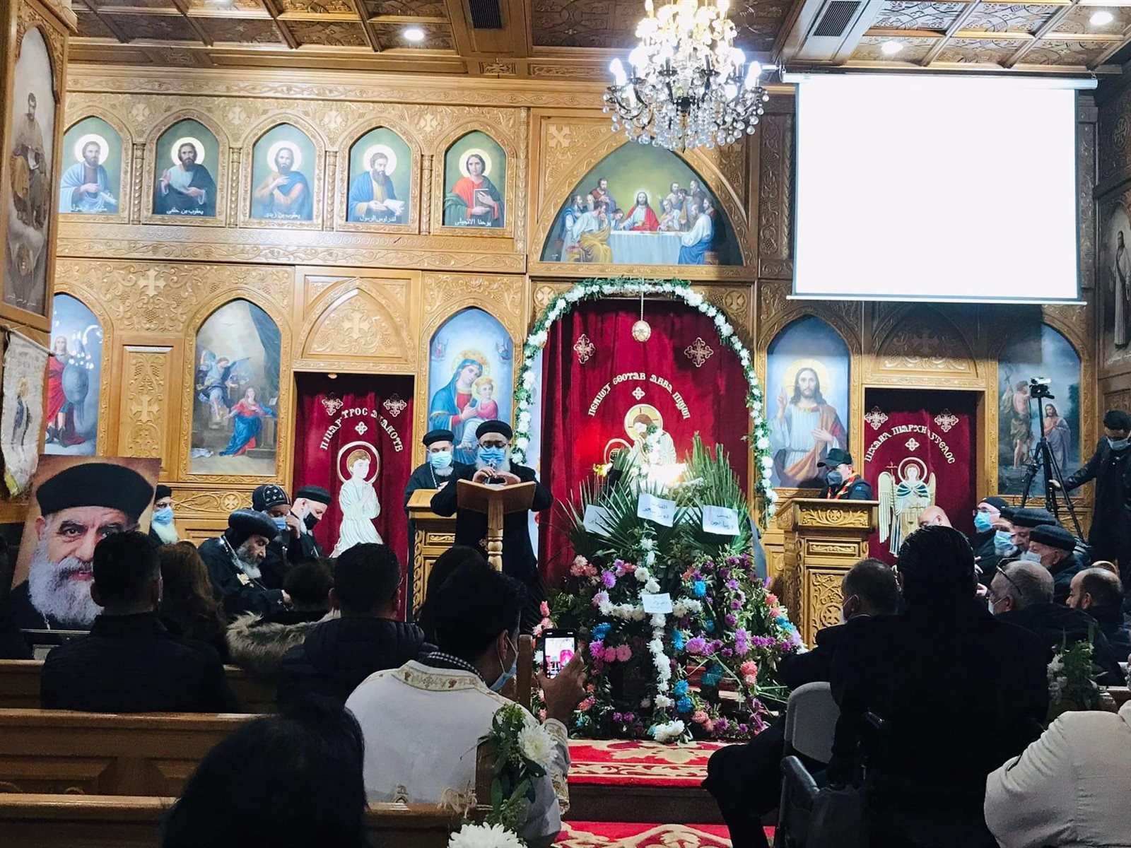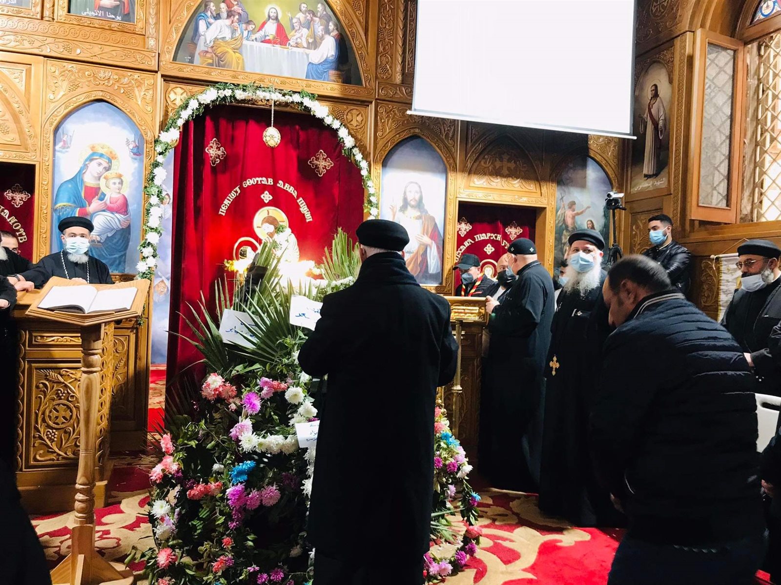 وترأس الأنبا تادرس مطران بورسعيد وتوابعها، صلاة الجنازة على الشماس أنطونيوس القمص بيشوى فخرى بكنيسة الأنبا بيشوى التابعة لمطرانية بورسعيد، وذلك بالكنيسة ذاتها التي كان ينتمي إليها الشماس ووالده والتى ولد فيها ونشأ فيها، وذلك بعد صراع طويل مع المرض