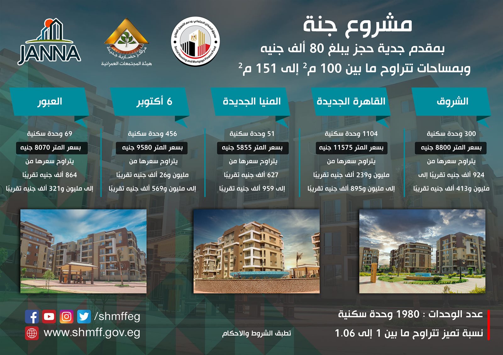 الطرح الجديد يتضمن 1980 شقة بمشروع جنة فى ٥ مدن جديدة.