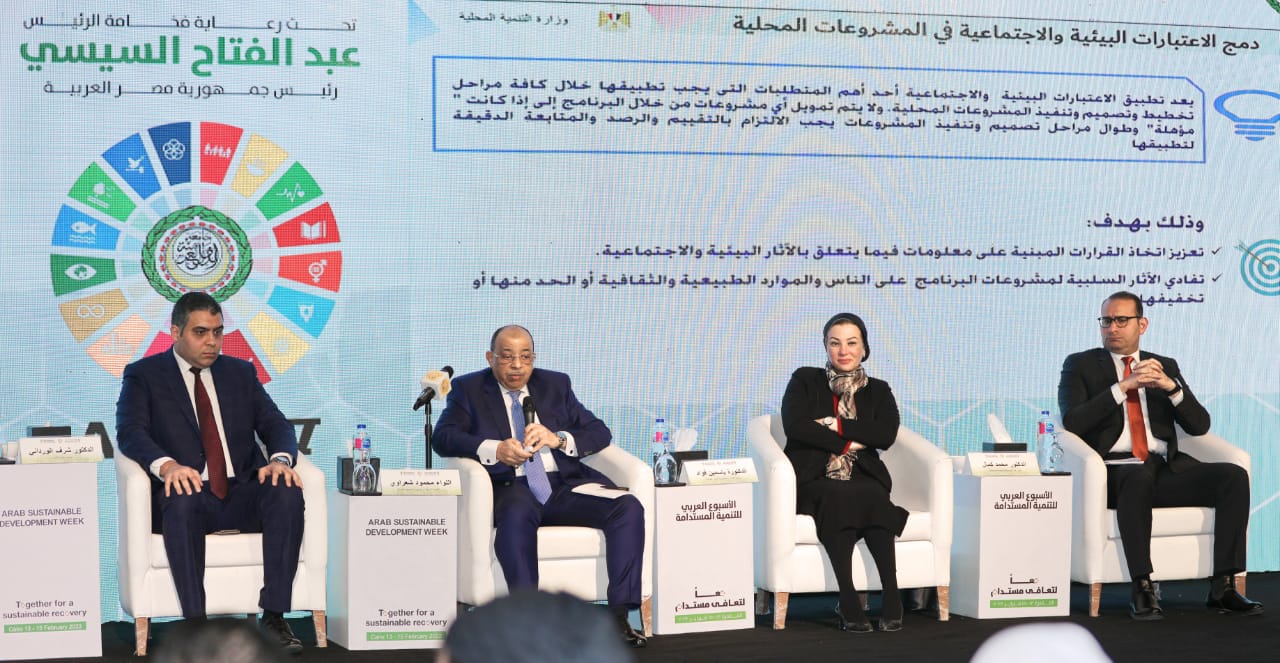 جاء ذلك خلال مشاركة الدكتورة ياسمين فؤاد وزيرة البيئة فى الأسبوع العربى للتنمية المستدامة الذى يقام برعاية السيد رئيس الجمهورية تحت عنوان "معًا لتعافٍ مستدام " للعمل على التخفيف من التداعيات والآثار السلبية لجائحة كورونا وتحقيق أهداف التنمية المستدامة فى البلدان العربية، وذلك بحضور اللواء محمود شعراوى وزير التنمية المحلية، والدكتور شريف الوردانى عضو مجلس النواب.