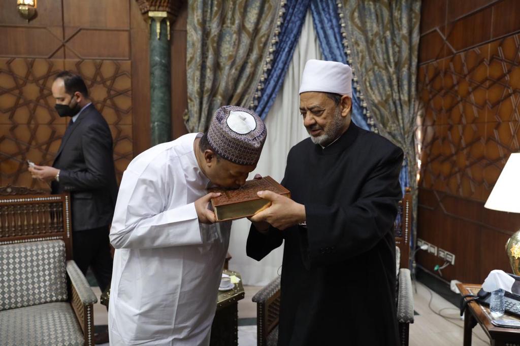 وفي ختام اللقاء أهدى فضيلة الإمام الأكبر، أمين عام منظمة الأوبك، نسخة خاصة من مصحف الأزهر الشريف، كما أهدى الأمين العام لمنظمة أوبك لشيخ الأزهر كتابا يحكي قصة المنظمة من بداية أول اجتماع تحضيري لتأسيسها في القاهرة وحتى اليوم.