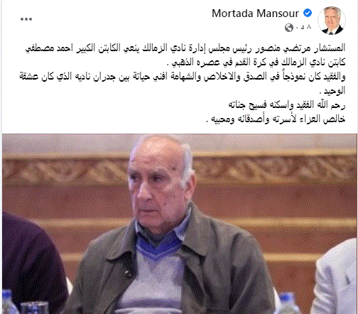 نعى المستشار مرتضى منصور رئيس نادي الزمالك، أحمد مصطفي نجم القلعة البيضاء السابق والذي توفي صباح اليوم بعد صراع مع المرض.