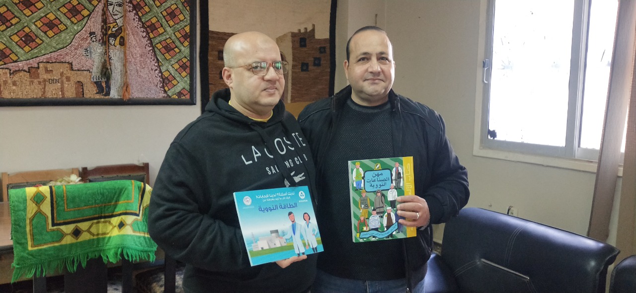 أما الكتاب الثاني فهو يحمل عنوان "مهن الصناعات النووية" ويسلط الضوء على تنوع التخصصات في مجالات الطاقة النووية ومساهمتها في تنمية المجتمع والحفاظ على البيئة. والكتاب من شأنه اطلاع الطلاب الذين يختارون مسارهم المهني المستقبلي على المجالات التي يكثر فيها الطلب على المتخصصين في مجال التقنيات النووية بما في ذلك توليد الطاقة والطب والزراعة وعلم الآثار وغيرها.