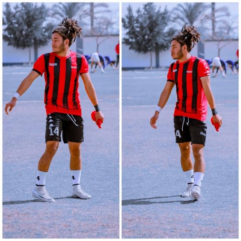 "محمد عشري" لاعب مركز شباب سمسطا المشارَك في دوري القسم الثالث للمجموعة الرابعة، والذي يعمل في مجال البناء والنقاشة كعامل يومية، من أجل إعانة أسرته.