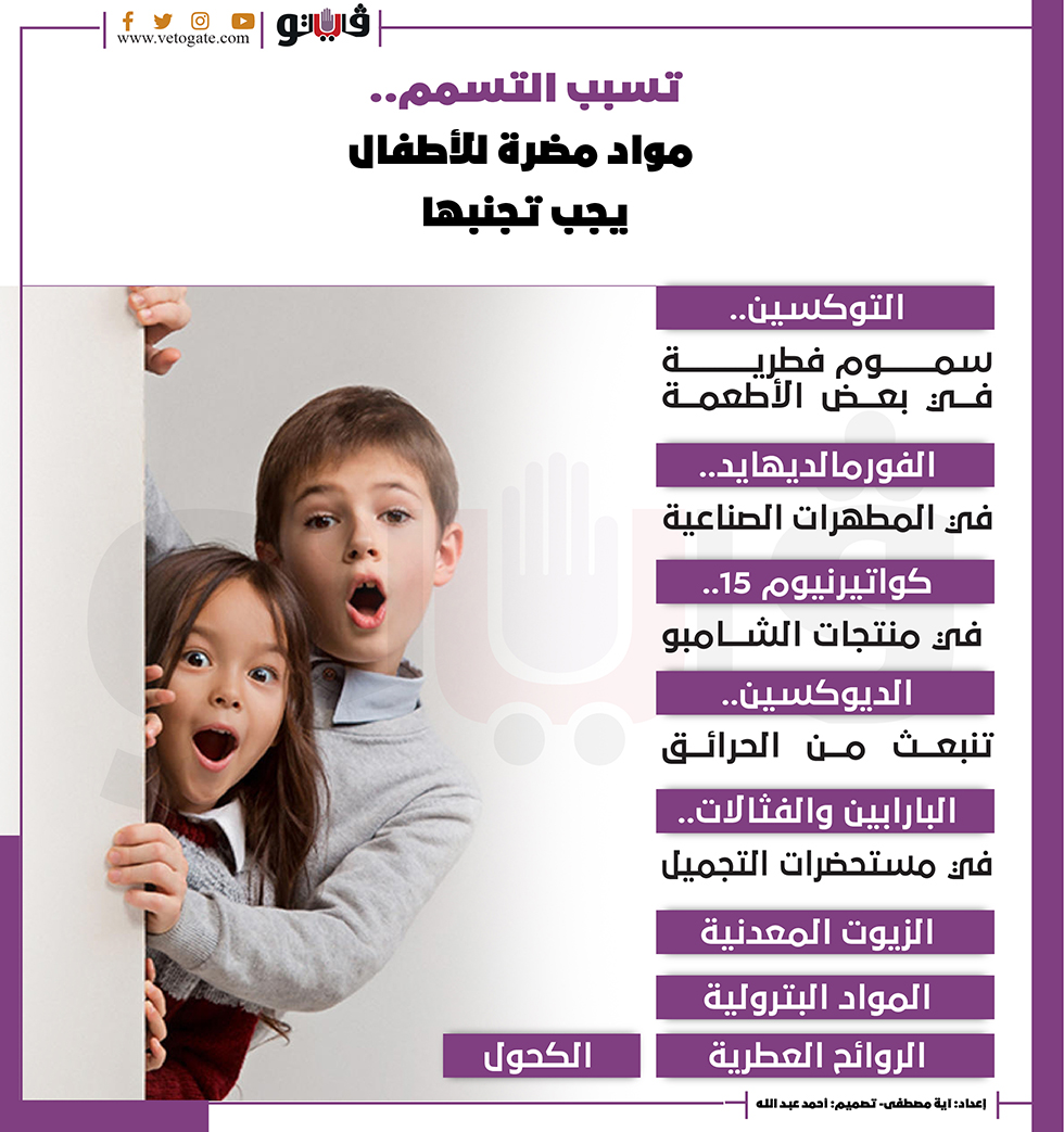 تسبب التسمم.. مواد مضرة للأطفال يجب تجنبها | إنفوجراف الأحد 20/فبراير/2022 - 04:03 م 2/20/2022 4:03:53 PM مواد مضرة للأطفال آية مصطفى شارك طباعة 18 حجم الخط شارك طباعة التسمم المواد البترولية مستحضرات التجميل المطهرات الكحول الشامبو