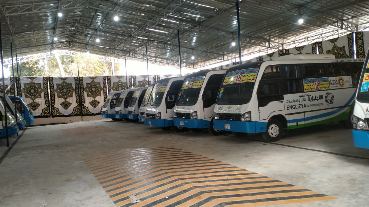 واستعدت الشركة باصطفاف الباصات داخل جراج محافظة الدقهلية بساحة الانتظار المجاور لحديقه شجرة الدرة على المشاية السفلية.