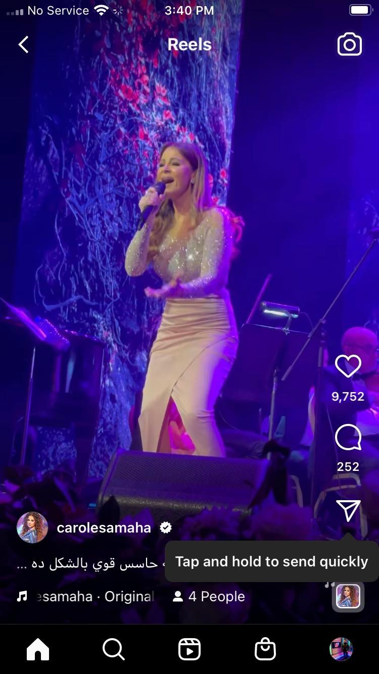 شاركت النجمة اللبنانية كارول سماحة الجمهور بمقطع فيديو من حفلها الأخير “بدار الأوبرا المصرية والتي أحيته يوم 16 فبراير الجاري وذلك من خلال حسابها الشخصي علي موقع تبادل الصور والفيديوهات "إنستجرام".