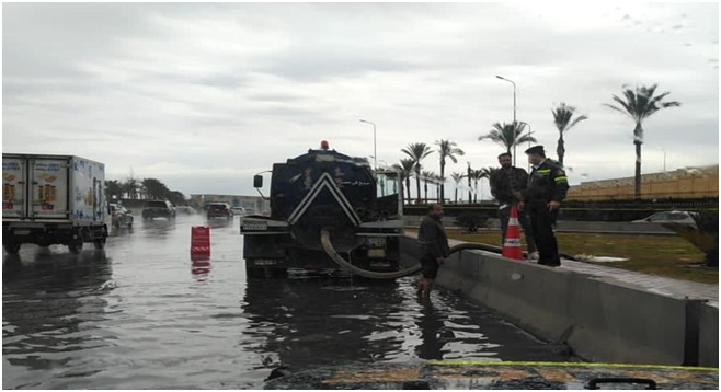 وقامت الأجهزة الأمنية بتكثيف الخدمات المرورية على كافة المحاور والطرق فى المحافظات التى تعرضت لموجة الطقس السيئ، ونشر سيارات الإغاثة والدفع الرباعى لمساعدة المواطنين من قائدى السيارات الذين تعطلت سياراتهم على الطرق.. إضافة إلى نشر الأوناش المرورية لرفع أى معوقات مرورية.. إلى جانب مساهمة قوات الحماية المدنية فى إزالة تجمعات المياه.