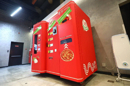 وكشفت صور ماكينات حمراء تشبه إلى حد ما آلات صنع القهوة، ولكنها مجهزة لصناعة البيتزا بشكل سريع.