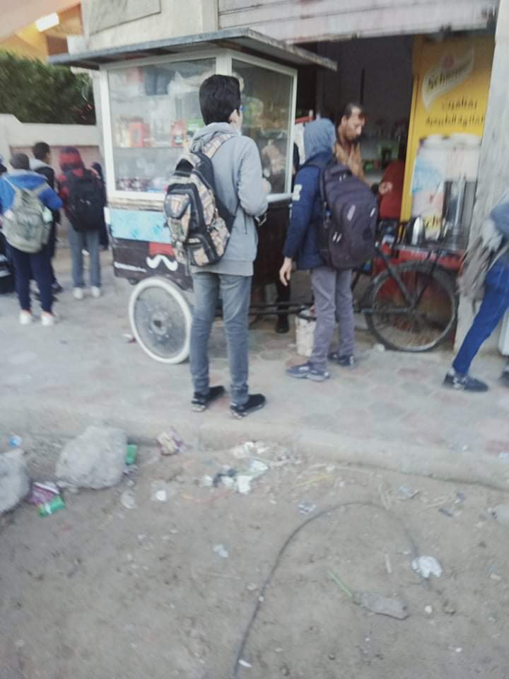 وأخذ الطلاب في التجمع أمام عربة الفول وسط تواجد أولياء الأمور أمام بوابات دخول مجمع المدارس.