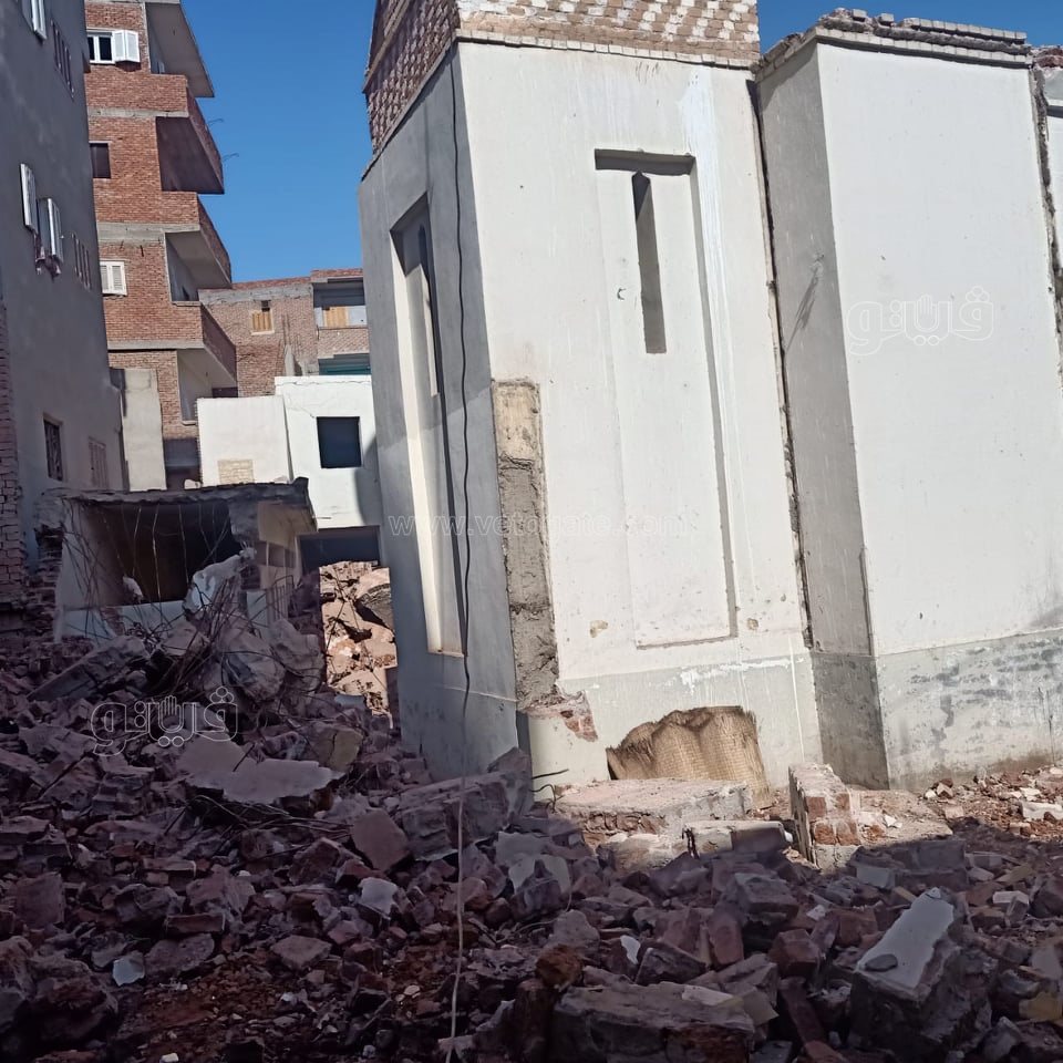 انهيار مئذنة مسجد أثناء الترميم بالشرقية | صور