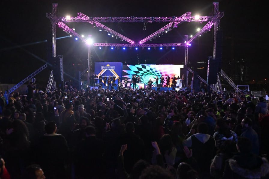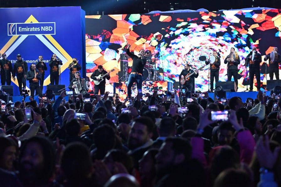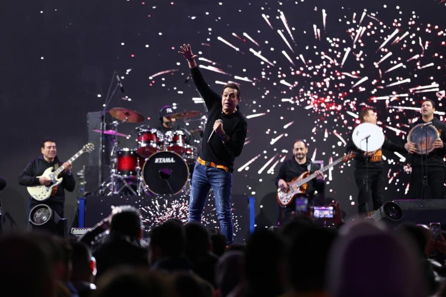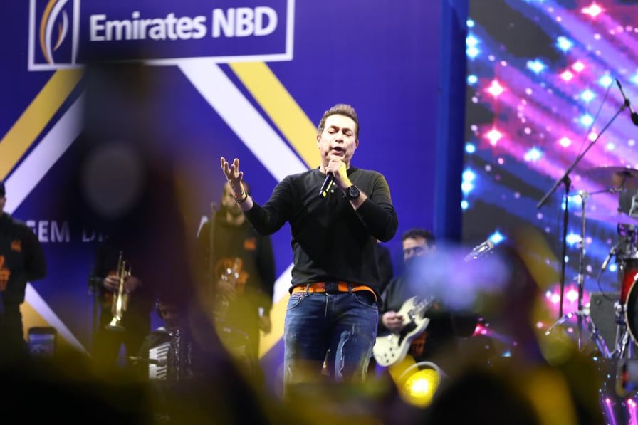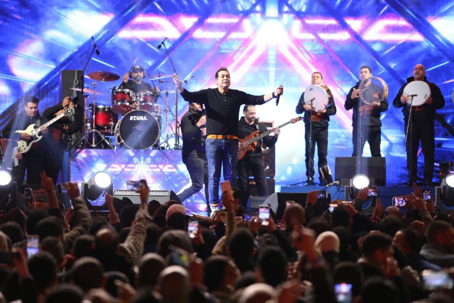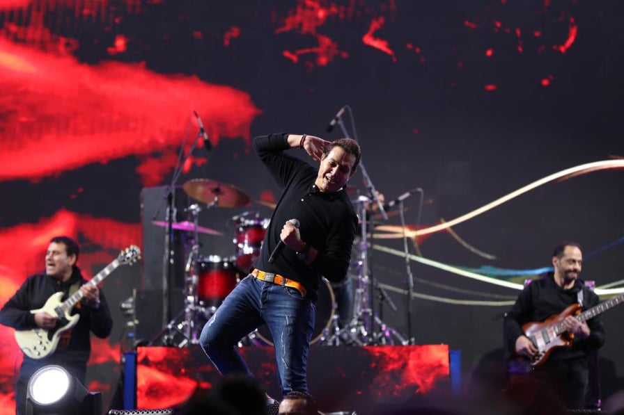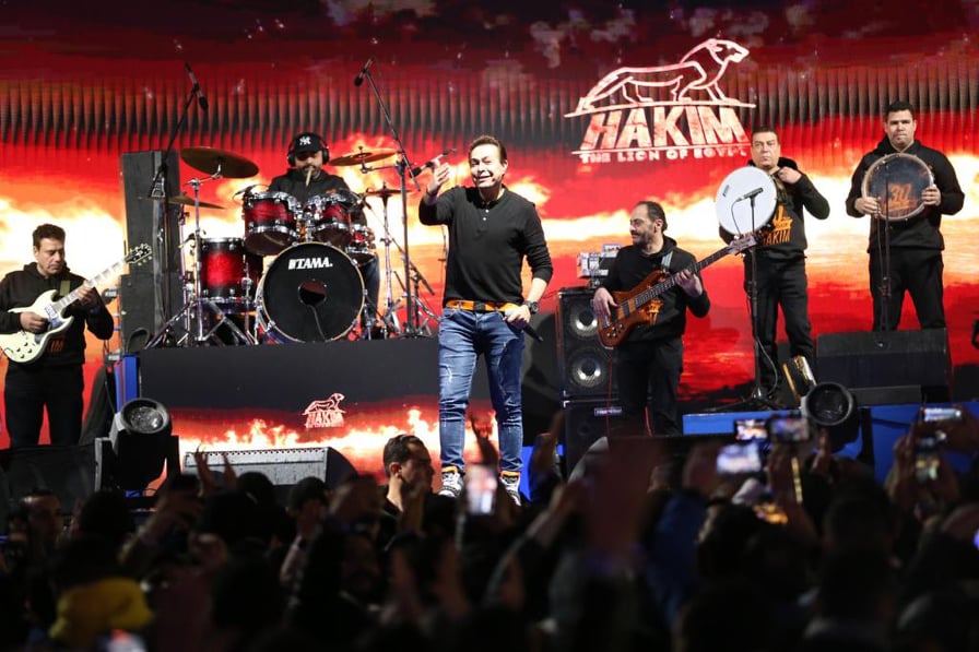حكيم قدم عددا كبيرا من أغنياته وسط تفاعل استثنائي من الحضور الذي يحفظ أغانيه ويرددها معه ويرقص عليها طوال الحفل.