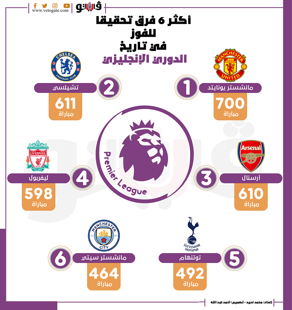 أكثر 6 فرق تحقيقا للفوز في تاريخ الدوري الإنجليزي | إنفوجراف الإثنين 21/فبراير/2022 - 12:21 م 2/21/2022 12:21:21 PM مانشستر سيتي وتوتنهام محمد سيد شارك طباعة 18 حجم الخط شارك طباعة مانشستر سيتي مانشستر يونايتد ليفربول الدوري الانجليزي توتنهام أرسنال تشيلسي البريميرليج الدوري الإنجليزي الممتاز