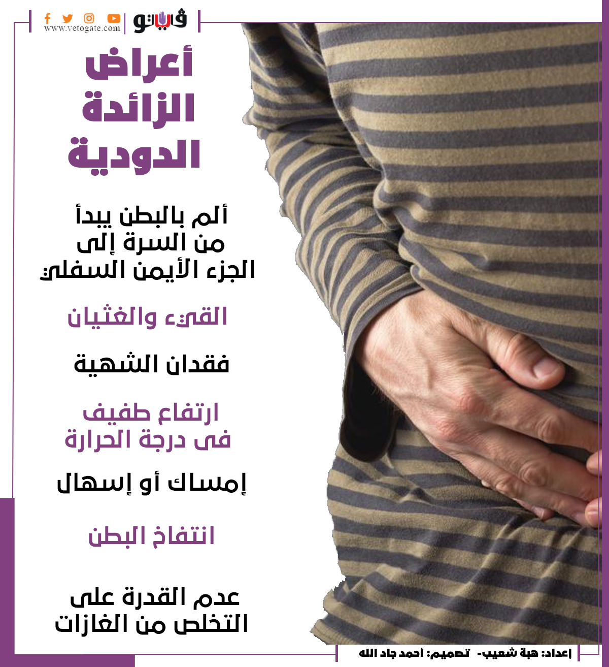 أعراض الزائدة الدودية |انفوجراف الإثنين 28/فبراير/2022 - 11:53 ص 2/28/2022 11:53:20 AM هبة شعيب شارك طباعة 18 حجم الخط شارك طباعة الزائدة الدودية اعراض الزائدة الدودية عند النساء صحة الصحة ألم بالبطن