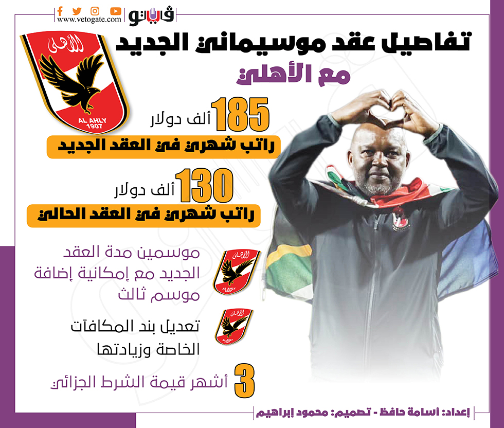 تفاصيل عقد موسيماني الجديد مع الأهلي | انفو جراف الإثنين 21/فبراير/2022 - 06:52 م 2/21/2022 6:52:02 PM موسيماني اسامة حافظ شارك طباعة 18 حجم الخط ا شارك طباعة الأهلي موسيماني عقد موسيماني اخبار الأهلي