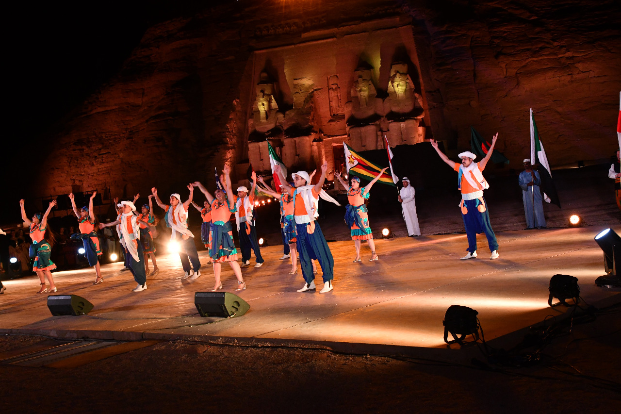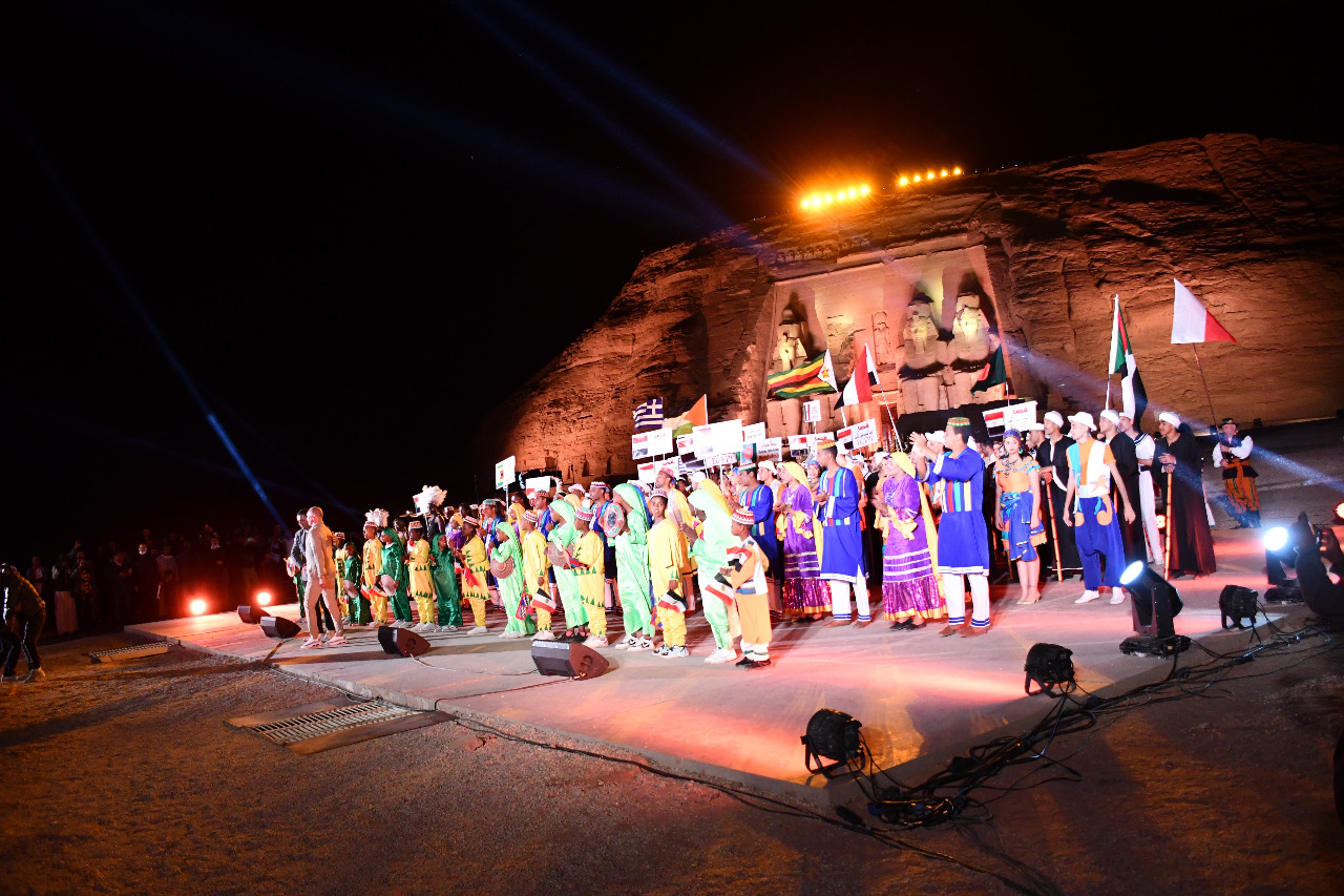 حيث استهلت الفاعليات بمشاهدة عرض للصوت والضوء بـ 7 لغات، ثم قدمت أحدى الشركات الإعلامية المتخصصة في العروض المبهرة الضوئية ثلاثية الأبعاد 3D، فيما شهدت الفاعليات ختام فعاليات مهرجان أسوان الدولي التاسع للثقافة والفنون بأوبريت "غنوا للشمس.. موال الشمس" من إخراج هشام عطوة رئيس الهيئة العامة لقصور الثقافة بمشاركة ١٨ فرقة تضم 430 فنانًا وفنانة من الفرق الأجنبية والعربية والأفريقية والمصرية.