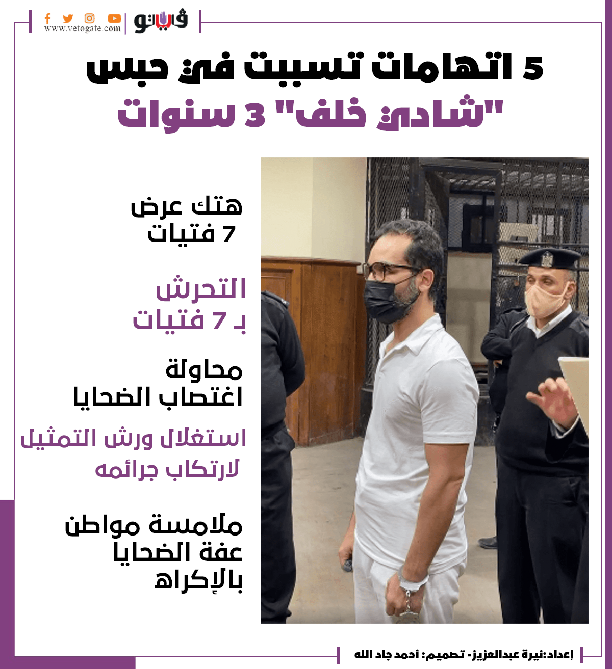 5 اتهامات تسببت في حبس "شادي خلف" 3 سنوات | إنفوجراف الثلاثاء 22/فبراير/2022 - 03:18 م 2/22/2022 3:18:57 PM شادي خلف نيرة عبد العزيز شارك طباعة 18 حجم الخط شارك طباعة شادي خلف الممثل شادي خلف محكمة جنايات القاهرة النيابة العامة