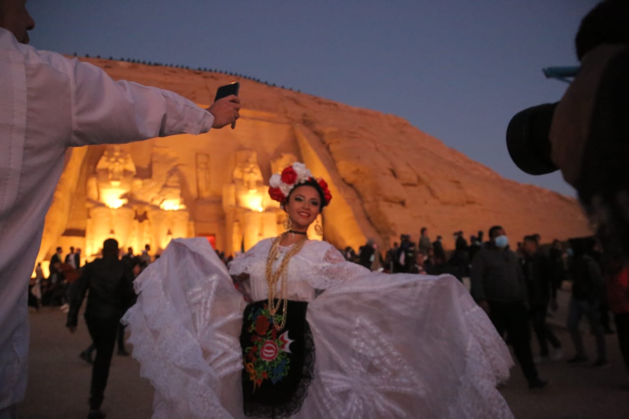وجاء هذا في إطار الفعالية التي نظمتها وزارة السياحة والآثار بالتعاون مع وزارة الثقافة بأبو سمبل بمناسبة ظاهرة تعامد الشمس والتي شملت عرض فني باستخدام الوسائل التكنولوجية الحديثة والمتطورة، يسرد قصة اكتشاف معبد الملك رمسيس الثاني بأبو سمبل، وعملية إنقاذه وتفكيك أحجاره ونقلها وإعادة تركيبها في موقعه الجديد أمام بحيرة ناصر في ستينيات القرن الماضي.