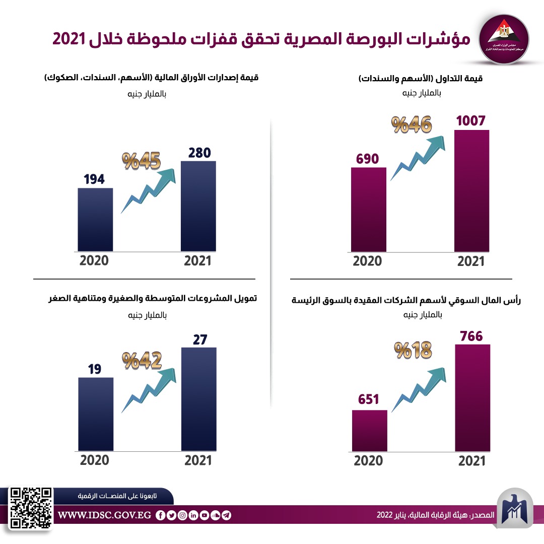 مؤشرات البورصة المصرية تحقق قفزات ملحوظة في 2021 | إنفوجراف