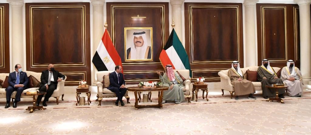 من جانبه، رحب ولي العهد الكويتي بالرئيس، مؤكدا التقدير والمودة التي تكنها دولة الكويت لمصر قيادةً وشعبًا في ضوء عمق ومتانة العلاقات والروابط التاريخية الراسخة التي تجمع بين البلدين، فضلًا عن الدور الهام للجالية المصرية في عملية البناء والتنمية بالكويت كجسر للترابط بين الشعبين الشقيقين، ومن ثم حرص الجانب الكويتي على تعزيز التعاون مع مصر على كافة المستويات، والتشاور والتنسيق معها بشكل دوري إزاء مختلف القضايا، ومثمنًا في هذا الإطار دور مصر المحوري بالمنطقة باعتبارها ركيزة أساسية لأمن واستقرار الوطن العربي، إلى جانب حرصها على تعزيز التضامن بين الدول العربية والدفع قدمًا بأواصر العمل العربي المشترك.