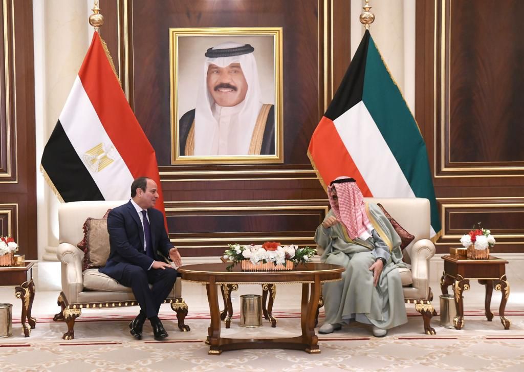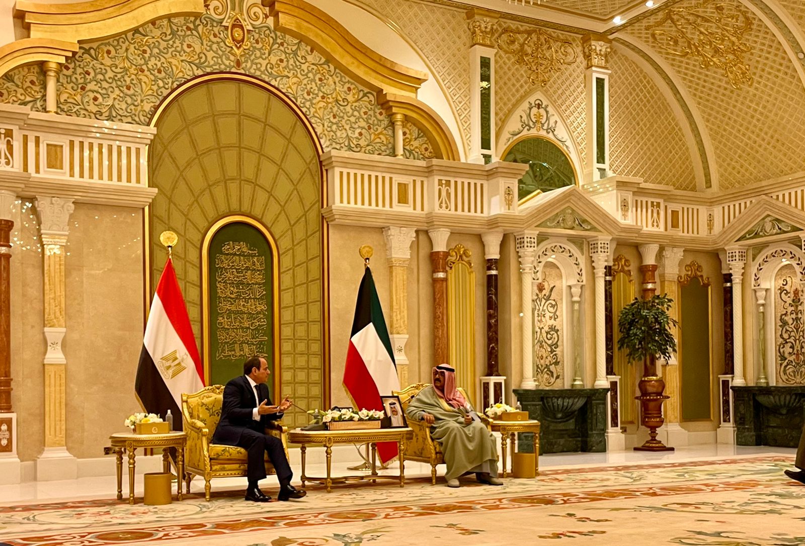 من جانبه؛ رحب الأمير نواف الصباح بالرئيس في الكويت، مشيدًا بالروابط الأخوية الوثيقة والتاريخية التي تجمع بين البلدين، ومعربًا عن تقديره للجهود المصرية الداعمة للشأن الكويتي على كافة الأصعدة، فضلًا عن إسهام الجالية المصرية في عملية البناء والتنمية بالكويت في مختلف المجالات، مع التأكيد على حرص الكويت على تعزيز أطر التعاون الثنائي الراسخة مع مصر فى مختلف المجالات خلال الفترة المقبلة، بما فيها من خلال زيادة الاستثمارات الكويتية في مصر واستغلال الفرص الاستثمارية المتاحة بها.