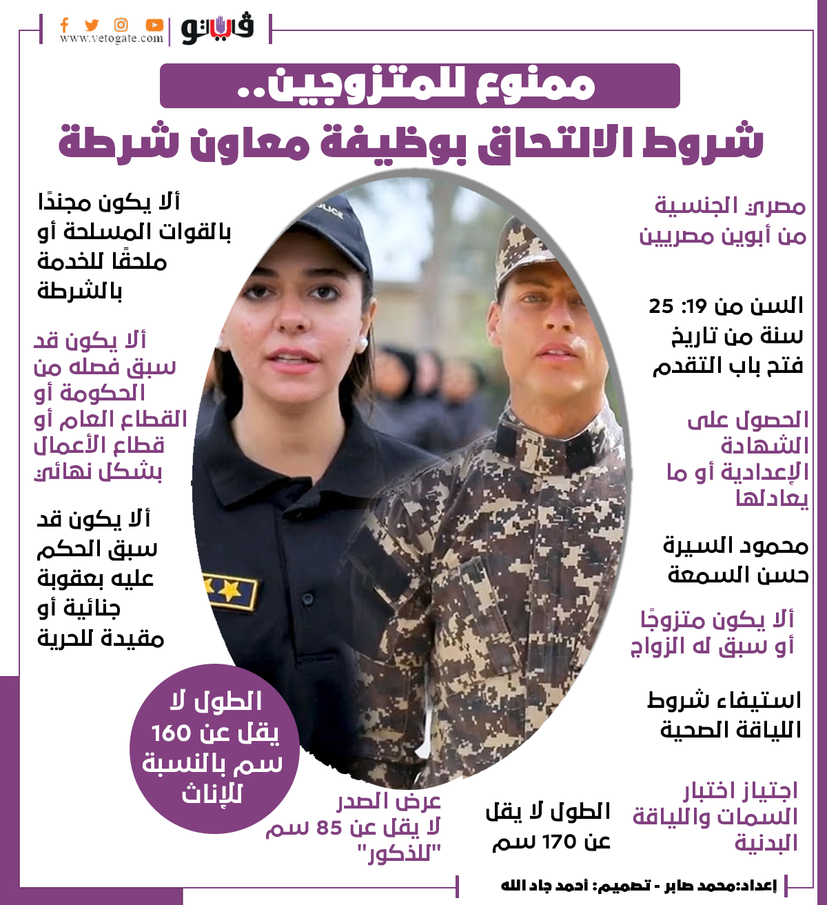 ممنوع للمتزوجين.. شروط الالتحاق بوظيفة معاون شرطة| إنفوجراف الأربعاء 23/فبراير/2022 - 06:41 م 2/23/2022 6:41:30 PM معهد معاونى الامن محمد صابر شارك طباعة 18 حجم الخط شارك طباعة وزارة الداخلية معهد معاونى الأمن عقوبة مقيدة للحرية معاون شرطة هيئة الشرطة الشهادة الاعدادية قبول دفعة جديدة