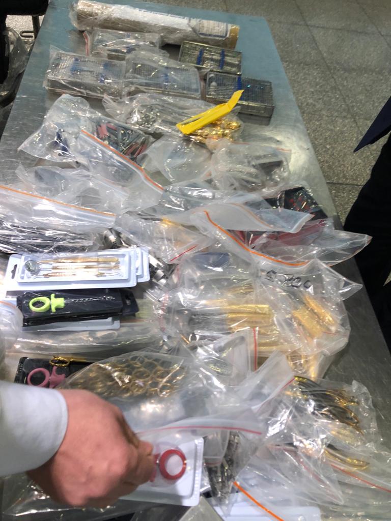 وأضافت المصادر أن احمد محمد فوزي مدير الحركة المشرف على صالة الوصول بمبني الركاب رقم ٢، كلف سامي نبيل سامي مأمور الجمرك، بتفتيش حقائب الراكب يدويا، مما أسفر عن ضبط ١٨٩٠ قطعة معدنية من مستلزمات طب الاسنان، و٣١ علبة بداخلها قطع خاصة بمستلزمات الأسنان، و٦ كجم قطع معدنية أخرى عبارة عن قطع معدنية صغيرة خاصة بالاسنان.
