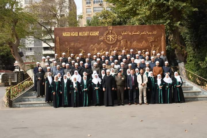 نشرت وزارة الأوقاف صورا لعددا من الأئمة والواعظات الحاصلين على دورة "الدراسات الاستراتيجية وتحديات الأمن القومي" المنعقدة بأكاديمية الأوقاف الدولية بعد تكريمهم بمقر أكاديمية ناصر العسكرية العليا، وعددهم ( 85 ) إمامًا وواعظة.