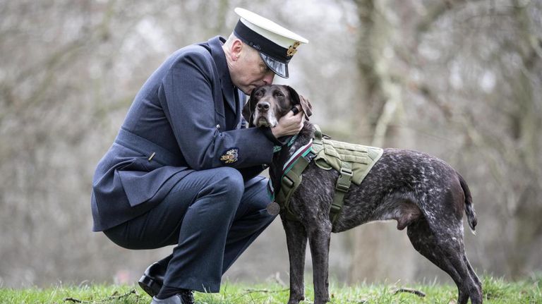 الكلب "هيرتز"، وهو من نوع "جيرمان شورتهيرد" ويبلغ من العمر 10 سنوات ومتقاعد حاليًا، حصل على الميدالية التكريمية من جانب منظمة PDSA للرفق بالحيوان.