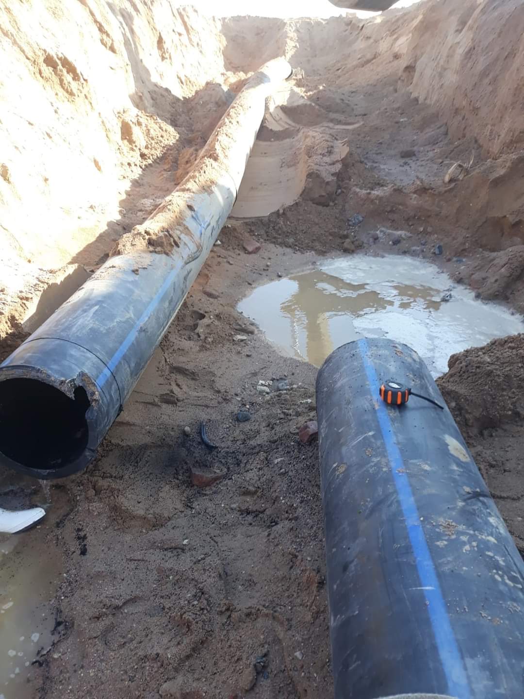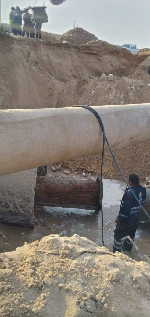 كما انتهت الأطقم الفنية بقطاع جنوب سيناء من عملية إصلاح كسر بالخط الناقل للمياه بولي إيثلين قطر 400 مم والواقع بين محطة رافع مياه الكيلو 11 ومحطة رافع مياه الكيلو 29 منطقة أبو رديس وتم إعادة الضخ.