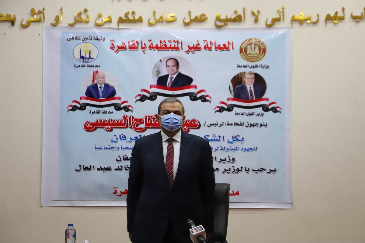 من جانبه قدم مدير مديرية القوى العاملة بالقاهرة، الشكر والتقدير للوزير والحضور، مشيرًا إلى أنه تنفيذا ً لتوجيهات القيادة السياسية متمثلة في الرئيس عبد الفتاح السيسي وتعليمات وزير القوى العاملة، بضرورة الاهتمام بالعمالة غير المنتظمة ووضعها نصب الأعين لتوفير الحماية والرعاية اللازمة لها من كافة الجوانب، من رعاية إجتماعية وصحية وأخيرًا تأمينية بعمل وثيقة تأمين تكافلي تحمي العمال فى حالات العجز الكلي أو الجزئي أو الوفاة.