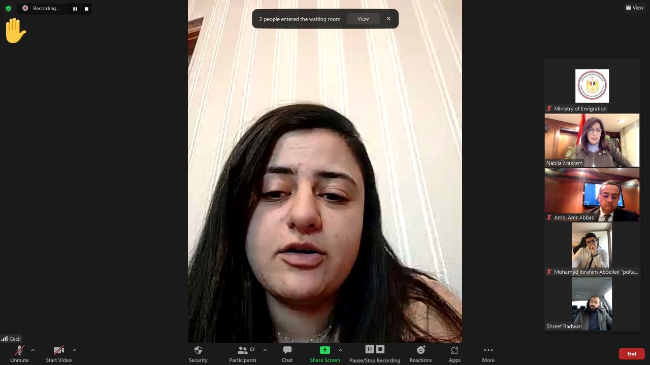 وزيرة الهجرة تعقد اجتماعا مع ممثلين عن الجالية والطلبة المصريين بأوكرانيا