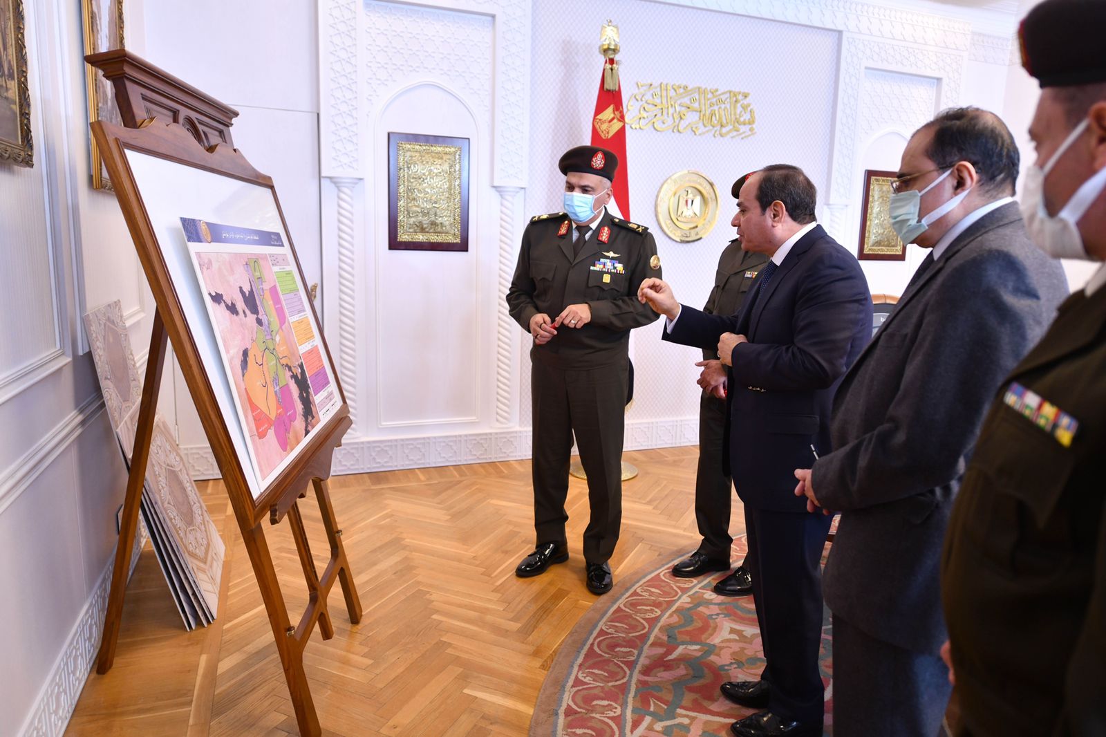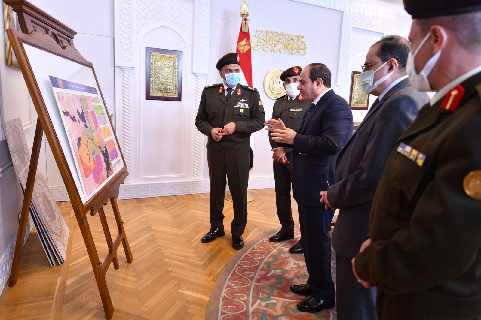 كما اجتمع الرئيس السيسي مع اللواء أمير سيد أحمد مستشار رئيس الجمهورية للتخطيط العمراني، واللواء إيهاب الفار رئيس الهيئة الهندسية للقوات المسلحة، واللواء أشرف العربي رئيس المكتب الاستشاري للهيئة الهندسية، واللواء أيمن سليمان مساعد رئيس الهيئة الهندسية للتسليح، والعميد عبد العزيز الفقي مساعد رئيس الهيئة الهندسية لتصميمات الطرق، والمهندس محمد طلعت، الاستشاري بمشروع مسجد مصر