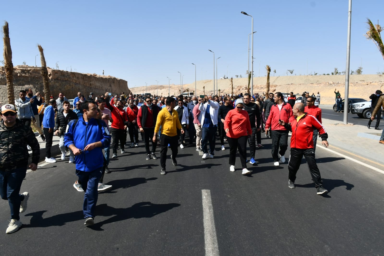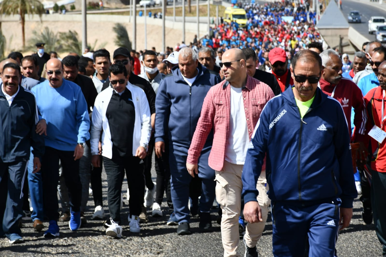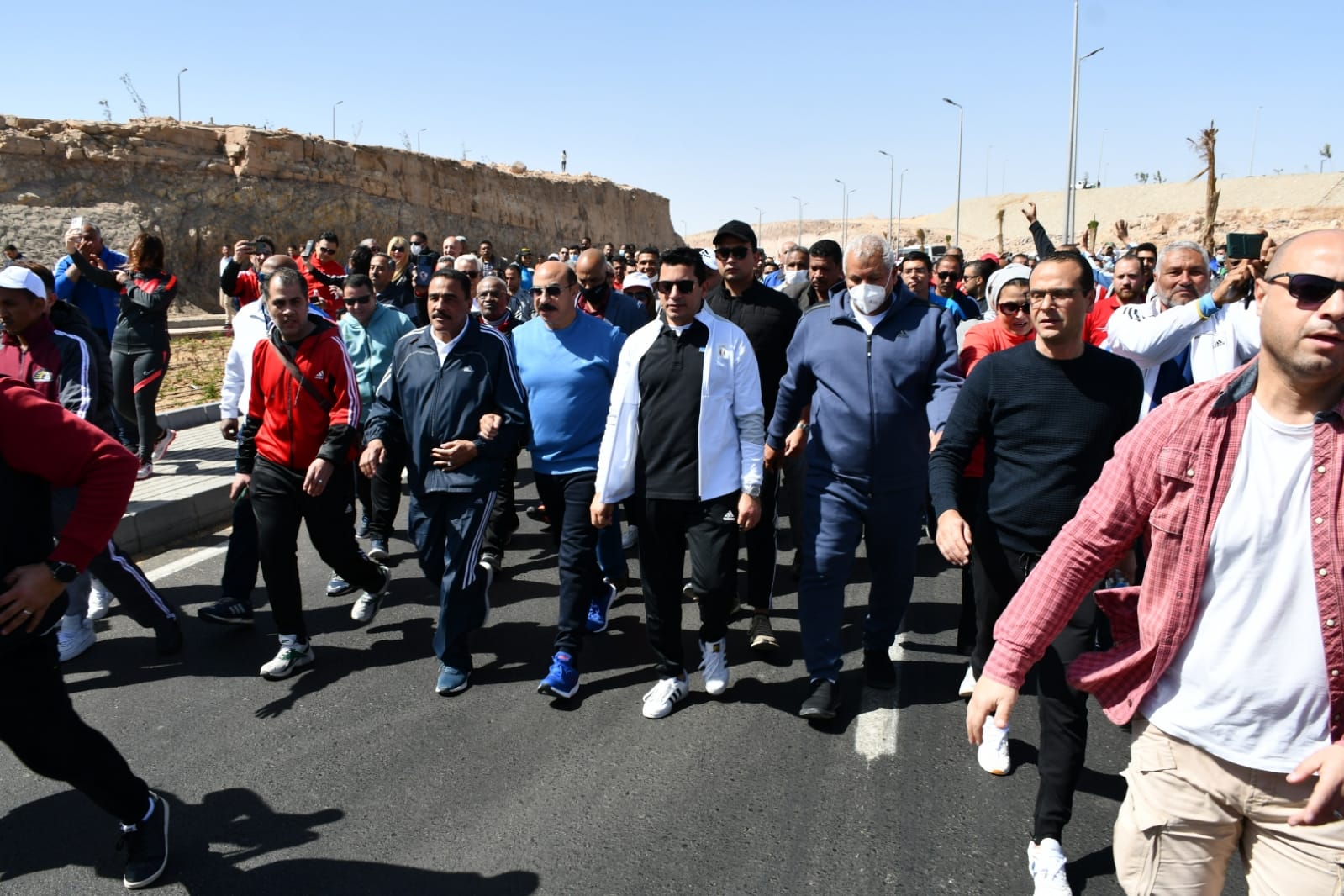 قاد الدكتور أشرف صبحي وزير الشباب والرياضة يرافقه اللواء أشرف عطية محافظ أسوان، واللواء محمد الزملوط محافظ الوادي الجديد، واللواء خالد شعيب محافظ مطروح، ماراثون مشي - صباح اليوم الجمعة- في مستهل فعاليات المرحلة الختامية لأولمبياد المحافظات الحدودية الذي تنظمه الوزارة بمحافظة أسوان في الفترة ٢٥ فبراير الجارى حتى ١ مارس ٢٠٢٢م.