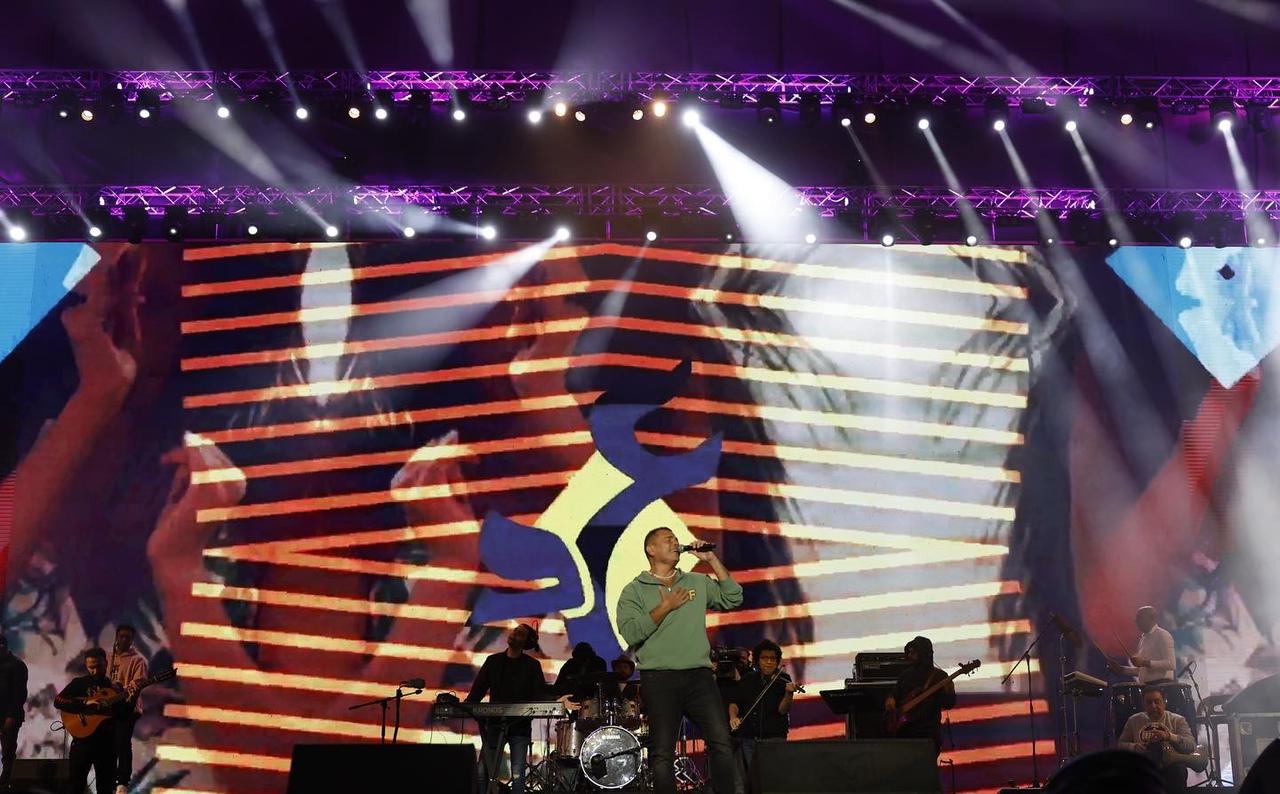 صعد عمرو دياب إلى المسرح مع أغنيته "يا أنا يا لأ"، وبعدها حرص على تحية الجمهور ووجه لهم كلمة قال فيها" بتوحشوني من فترة لفترة، بيوحشني أجي هنا وأغني وأبقى معاكم".