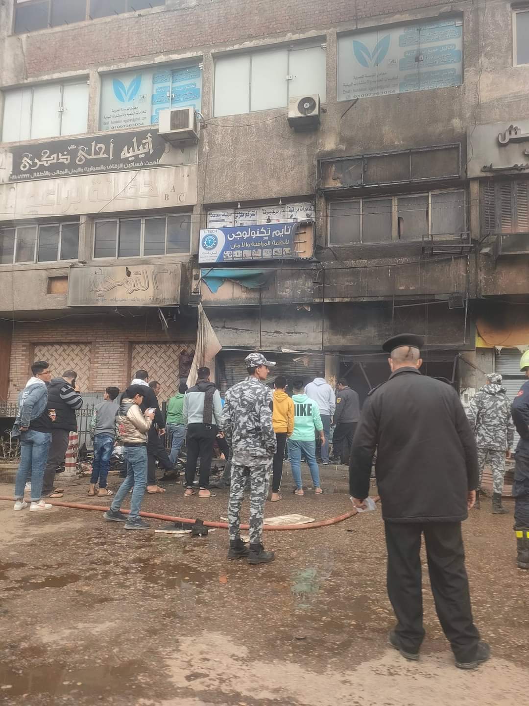 تم إخطار اللواء غالب مصطفى مدير أمن القليوبية وانتقلت سيارات الإطفاء وأجهزة الأمن وتم السيطرة على النيران ومنع امتدادها إلى المحال المجاورة وأتت النيران على محتويات من المحل ورجحت الأجهزة الأمنية سبب الحريق أنه ماس كهربائي وتحرر المحضر اللازم وتولت الجهات المعنية التحقيق.