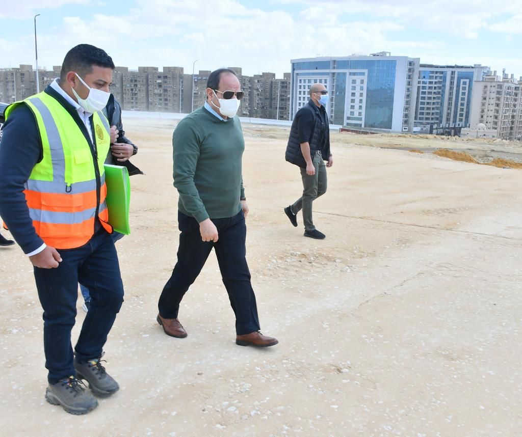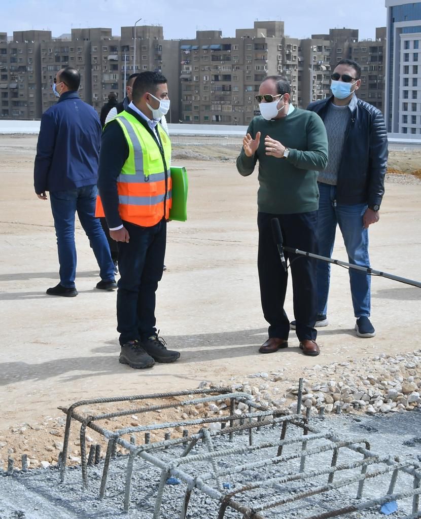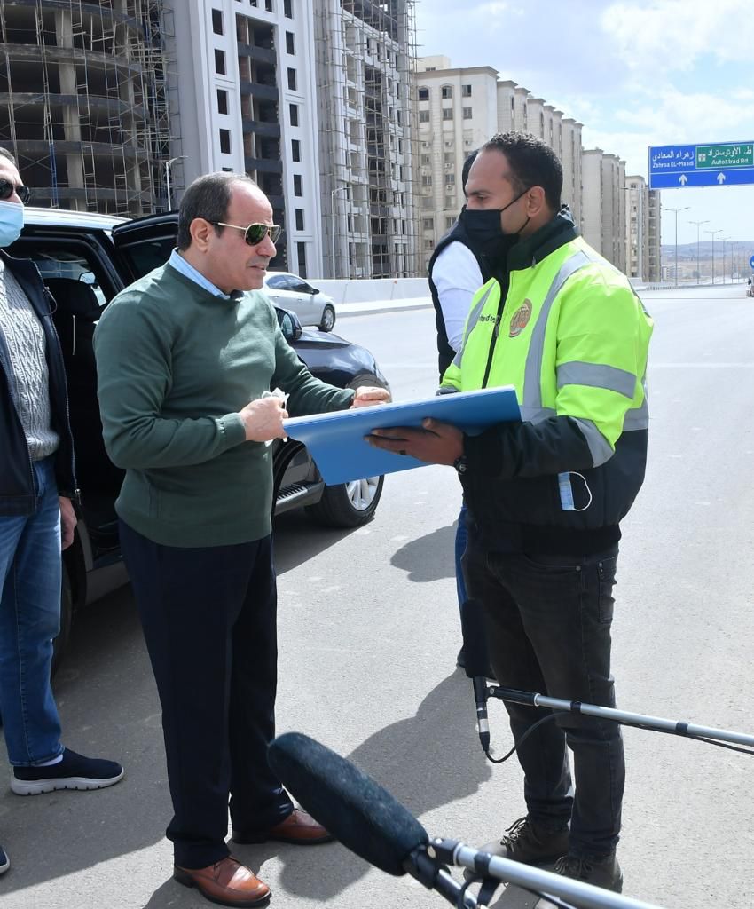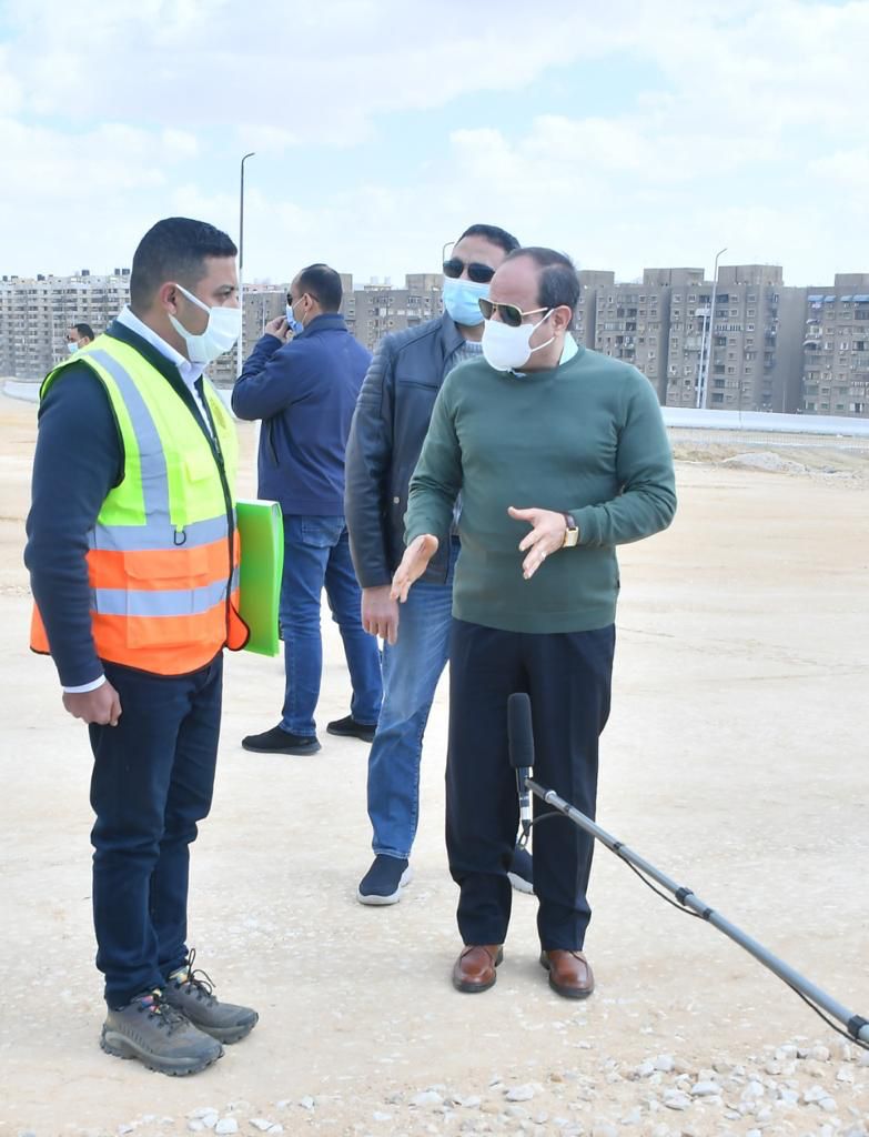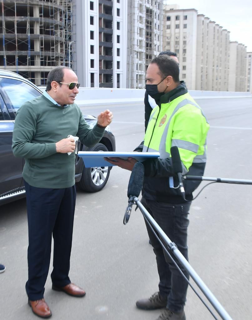 وقد حرص الرئيس على التوقف أثناء الجولة التفقدية ليناقش العاملين والمسئولين في مواقع العمل المختلفة بشأن تفاصيل الخطوات التنفيذية الجارية.