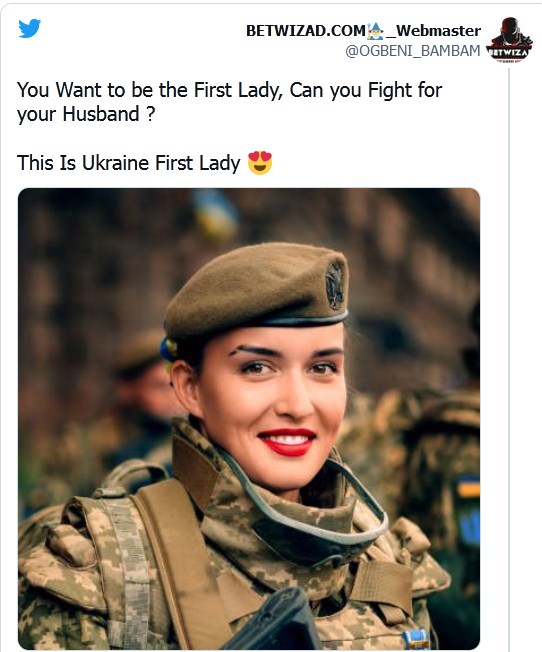وقال مشاركو الصورة: إنها تعود لسيدة أوكرانيا الأولى، وهي تشارك في مقاومة "الغزو الروسي" لبلادها.